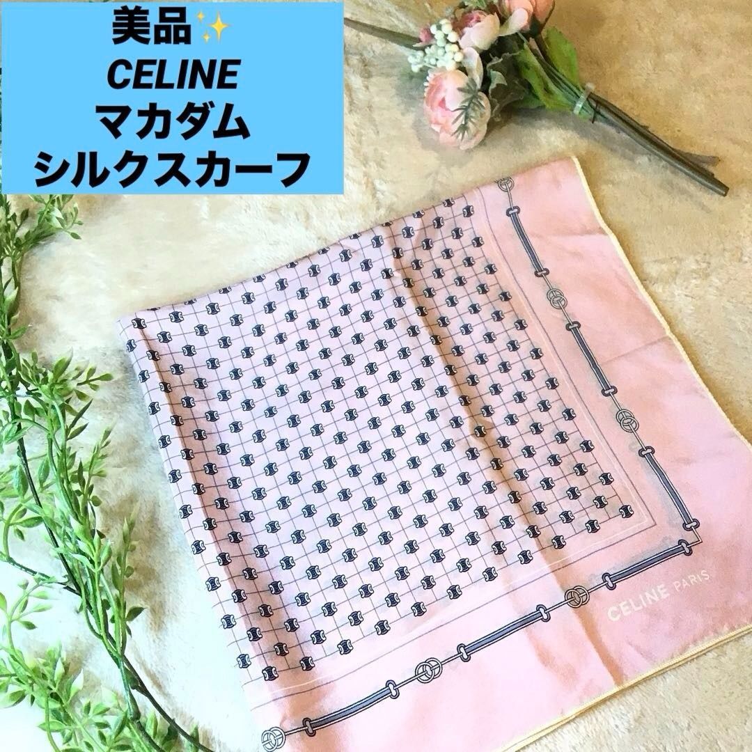 美品 CELINE マカダム シルクスカーフ ビンテージ チェーン ピンク
