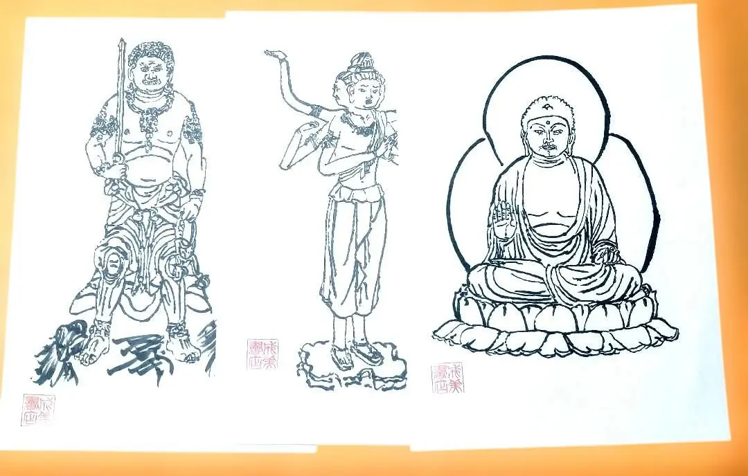 おすすめ・墨絵 仏像・3点セット イラスト 作品