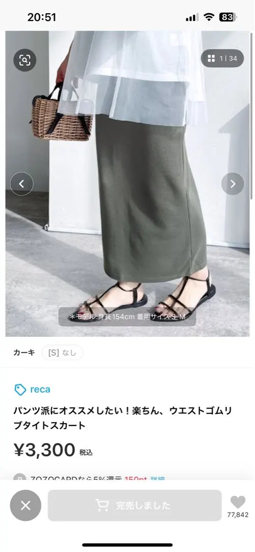 recaパンツ派にオススメしたい!楽ちん、ウエストゴムリブタイトスカート カーキ