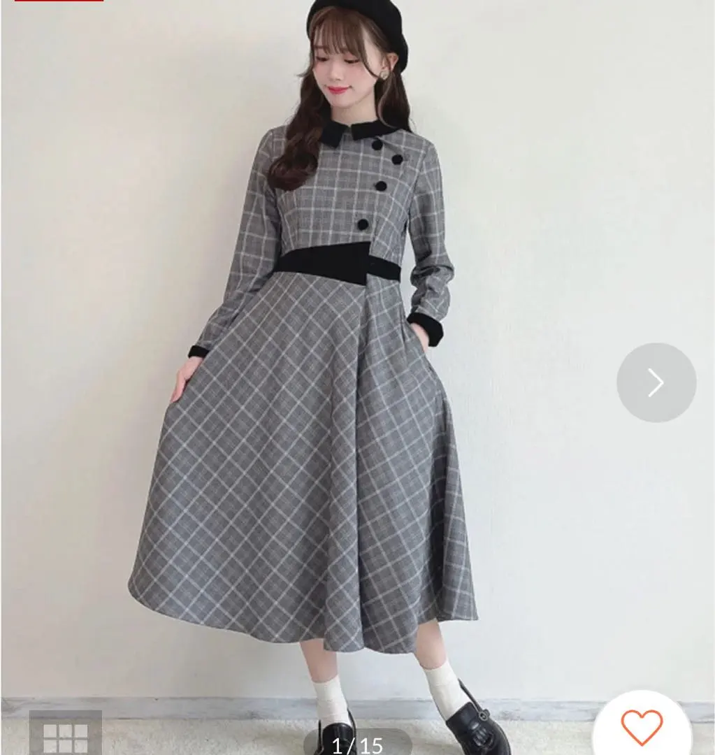 GRL 襟付き長袖ひざ丈ワンピース 黒