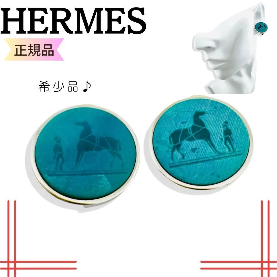エルメス HERMES コロゾ イヤリング ロゴ GP 馬 アイスグリーン