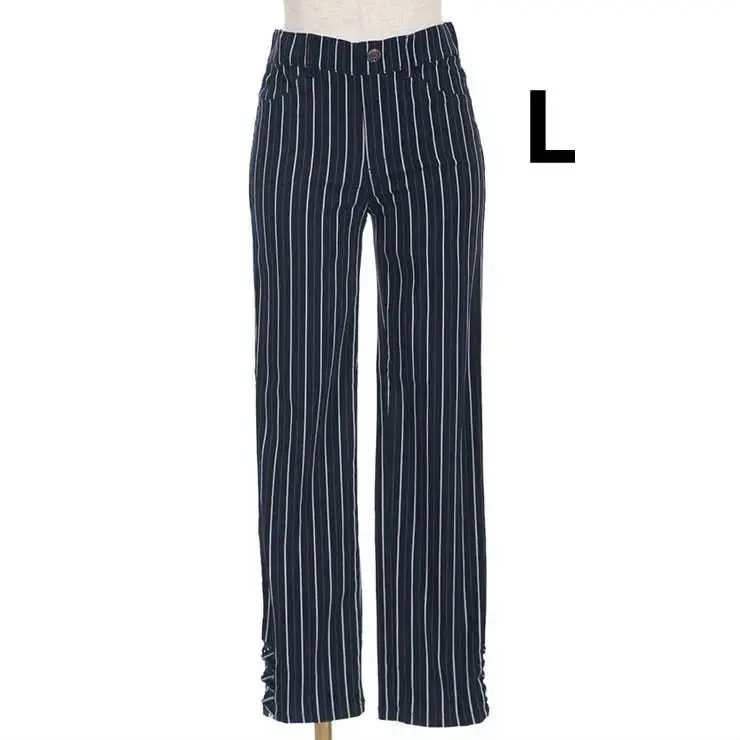 axes femme 裾レースストレッチスキニー パンツ 紺 Lサイズ