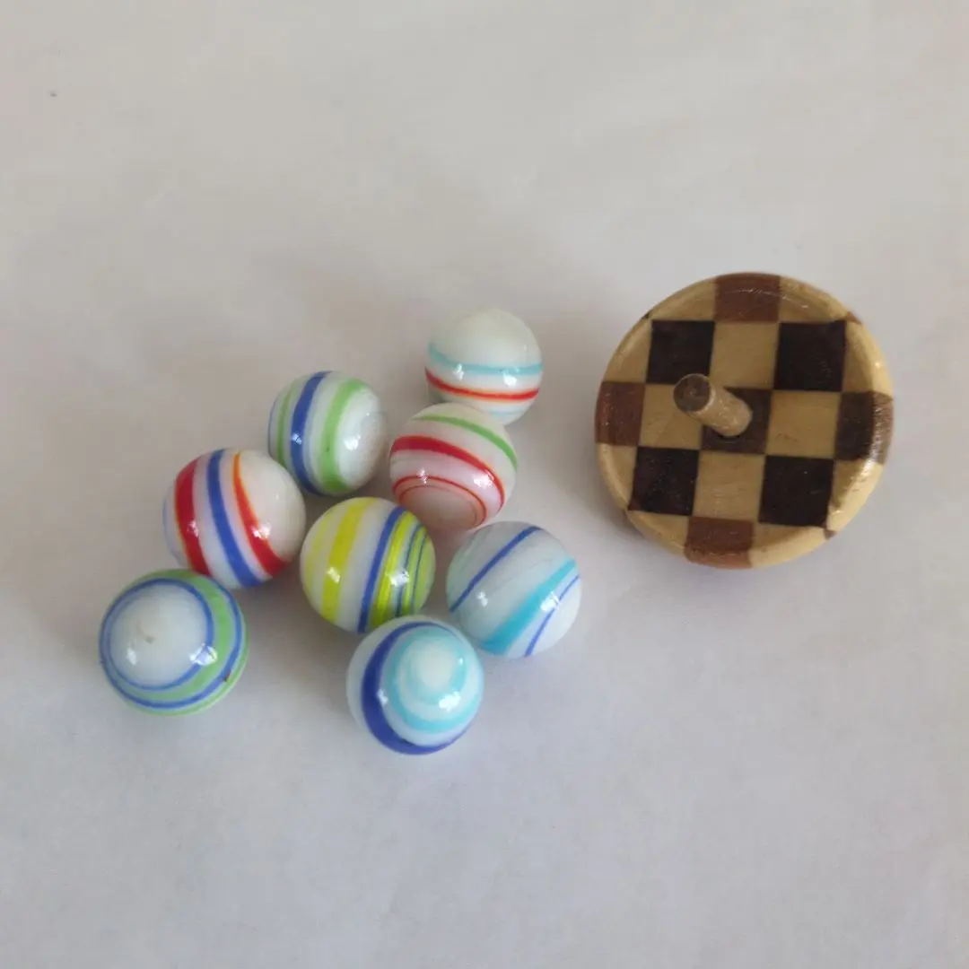 寄木細工 独楽とマーブルビー玉セット レトロ懐かしのおもちゃ