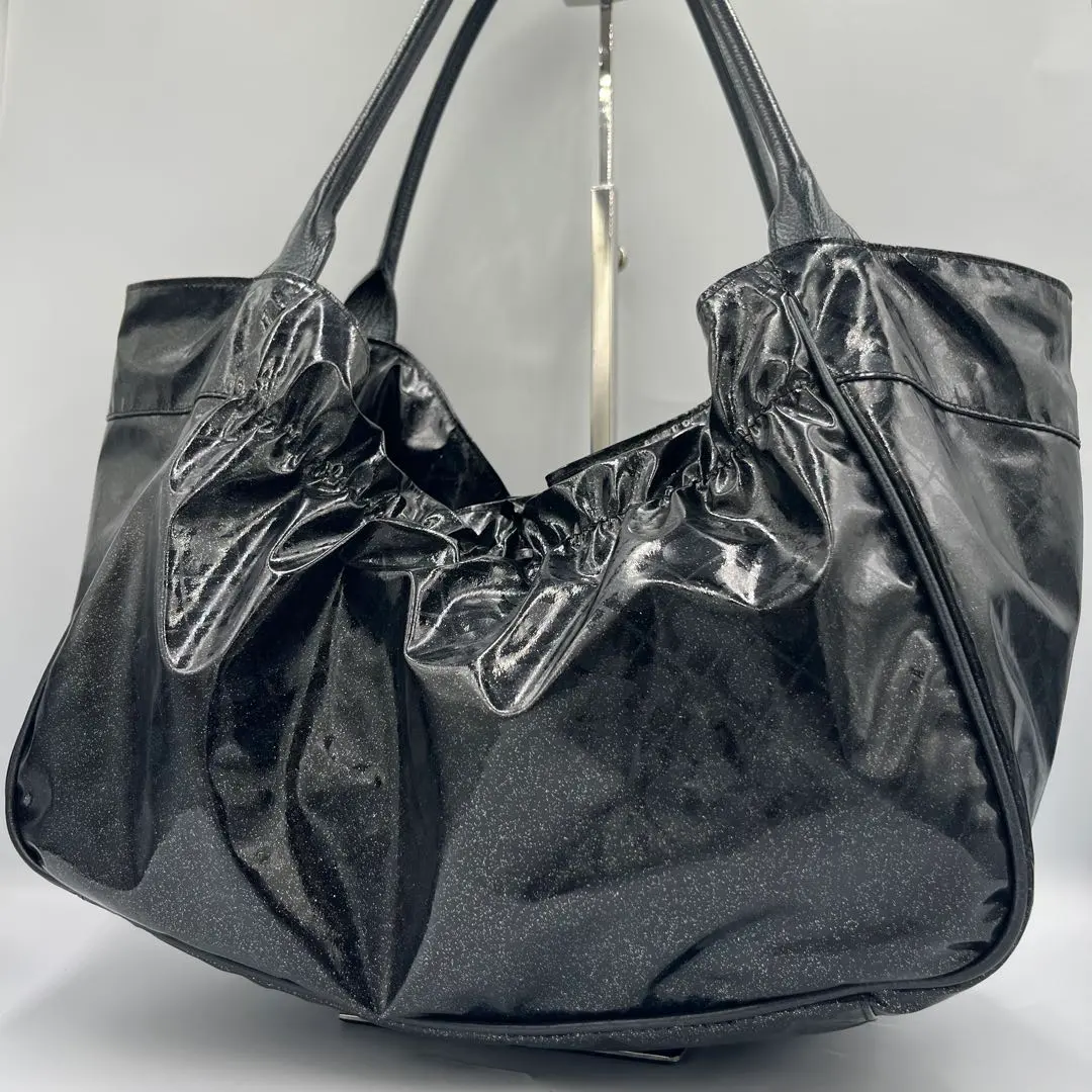 ゲラルディーニ トートバッグ ソフティ ギャザー エナメル ラメ 総柄 ブラック