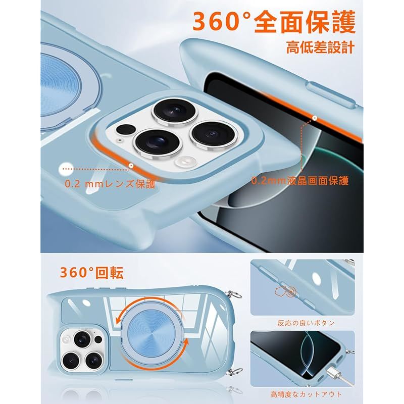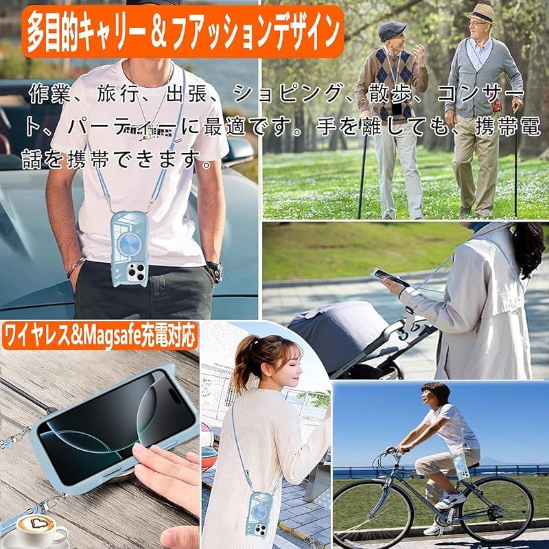 【ロープと支柱を装備】着脱式のネックストラップが付属しており、耐磨耗性の素材を採用しており、丈夫で耐用年数が長いです。首にかけておけば、人が混雑していてもスマホが落ちる心配がありません。必要がないときは、簡単に外すことで束縛から解放されます。 スマホケースの裏側のスタンドは 360° 回転可能で、置くだけでしっかりと支えることができます。横画面でドラマを見るときも、縦画面でビデオ通話をするときも、快適な角度が得られます。自宅で過ごすときも、仕事場で働くときも、旅の途中でも、いつでもくつろいだ姿勢を見つけることができます。