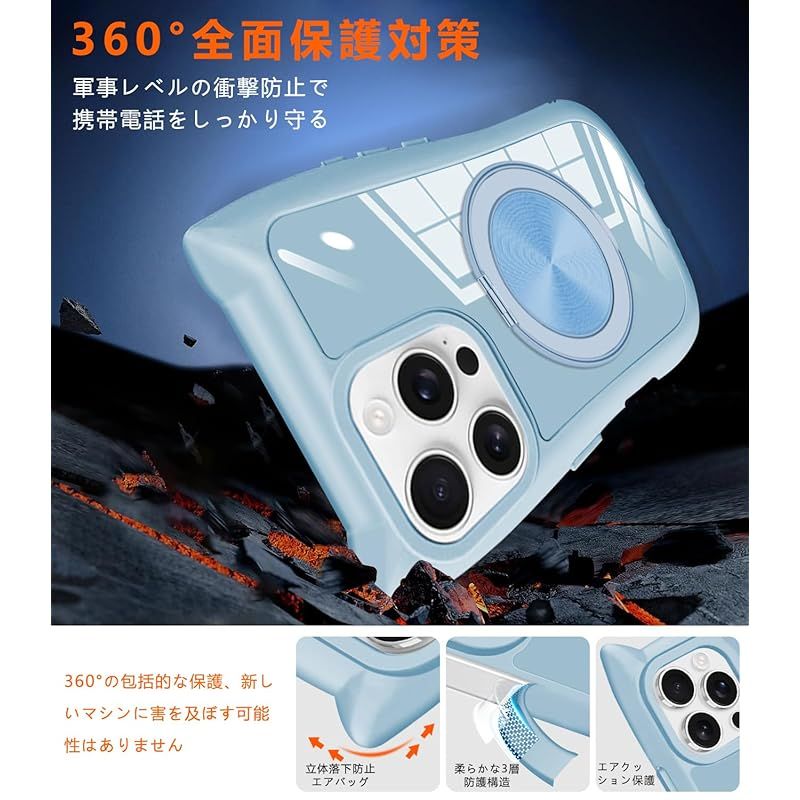 【精密なデザイン、万全の保護】画面とレンズをスマホケースに巧みに組み込み、クッション材と強化されたボーダーを組み合わせて、不慮の落下時に衝撃力を効果的に分散し、スマートフォンに全方位の保護を提供します。