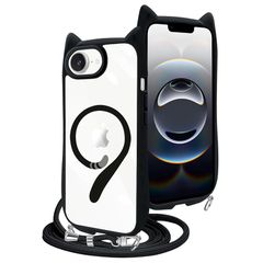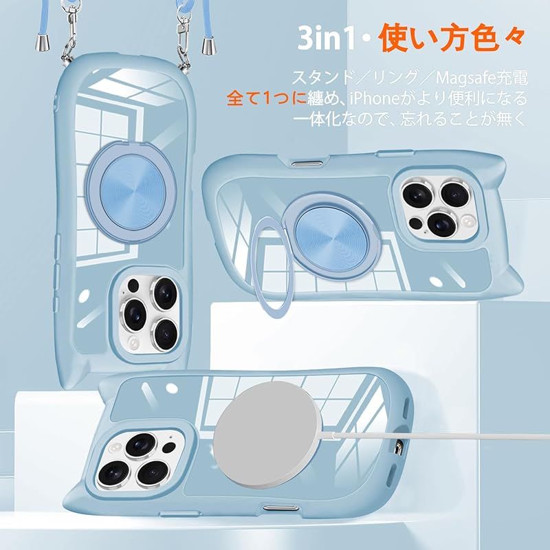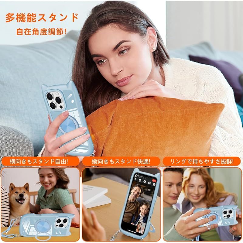 商品名:【新品】 iPhone 15 用 スマホケース 猫耳デザイン シンプルでファッション 360° 回転スタンド付き iPhone 15 スマホケース 滑り止め 黄ばみ防止 全面的な保護 長さ調節可能なネックストラップ付き