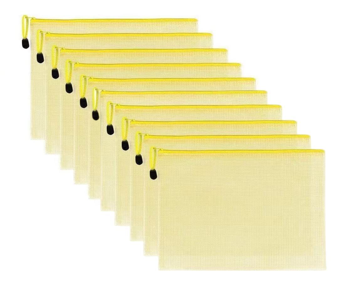 10個入 ジッパー式ファイル袋 ファイルケース メッシュドキュメントバッグ 新聞 雑誌 現金 ジッパー ファイルバッグ 收納袋 クリアホルダー 撥水 網目 ファスナ付 マルチサイズ 紙文書 半透明 PVC製 ファイル メモ コイン 旅行 アクセサリー 化粧品の保管 ファイルホルダー(B6,黄色)