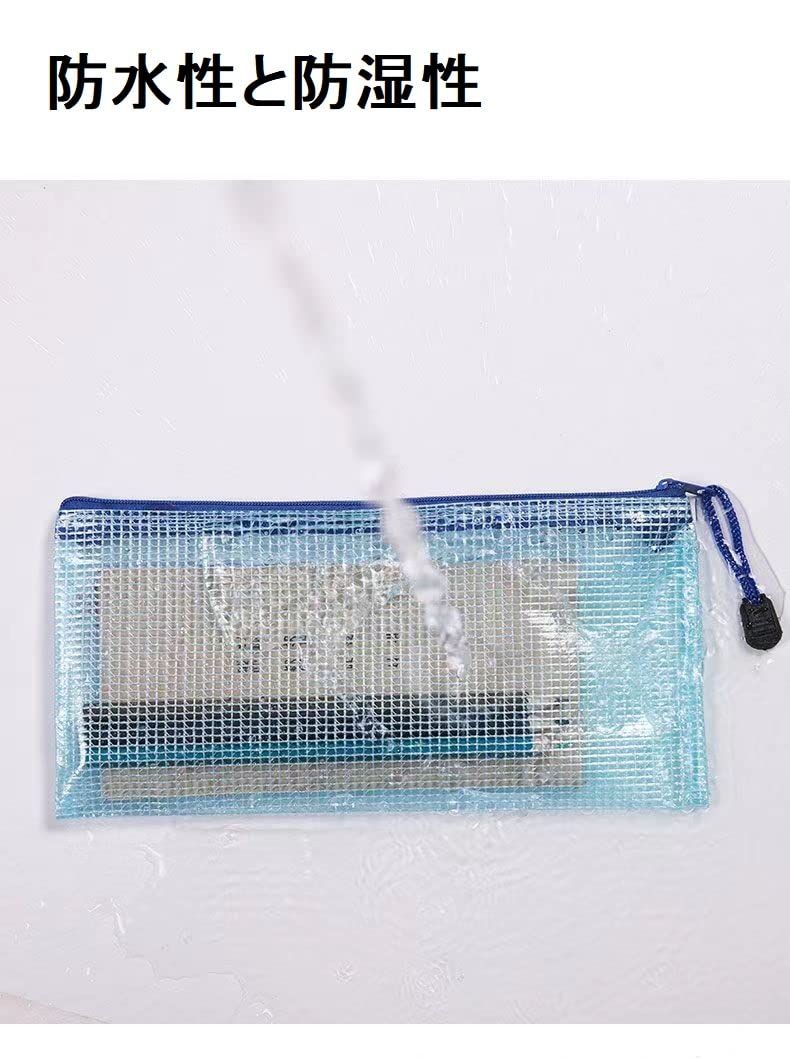 新品 10個入 ジッパー式ファイル袋 ファイルケース メッシュドキュメントバッグ 新聞 雑誌 現金 ジッパー ファイルバッグ 收納袋 クリアホルダー 撥水 網目 ファスナ付 マルチサイズ 紙文書 半透明 PVC製 ファイル メモ コイン 旅行 アクセサリー 化