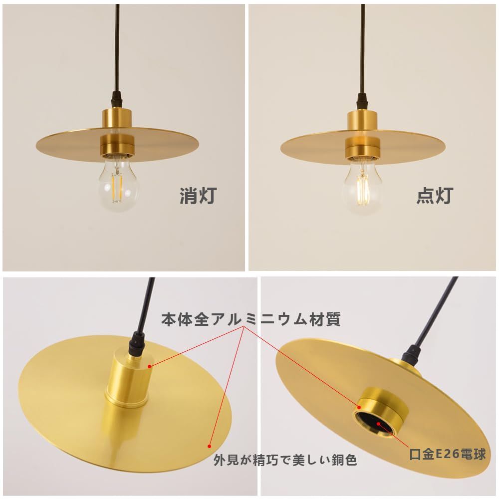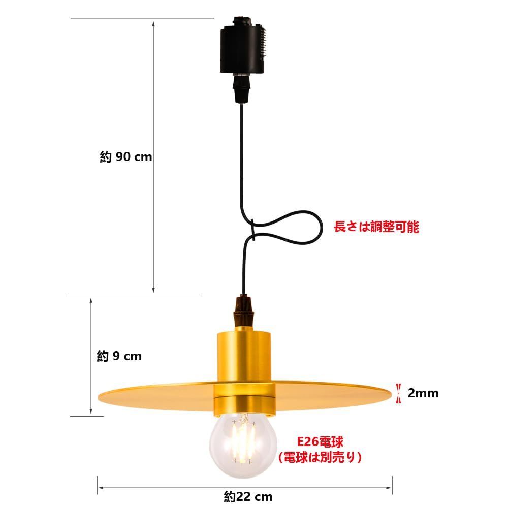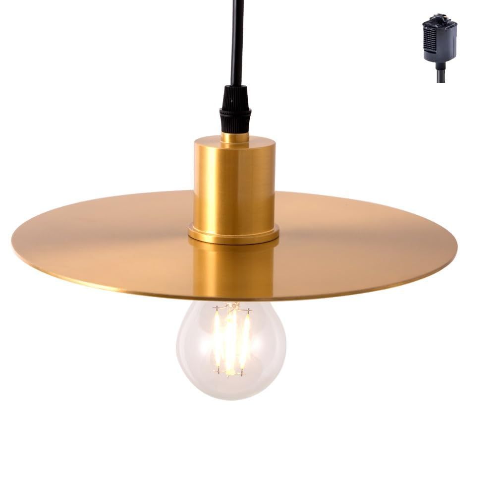 ペンダントライト アンティーク レトロ 1灯用照明器具 平ら 円盤シェード シンプル 吊り下げ照明 北欧風 口金E26 おしゃれ ダイニング リビング 居間 食卓 玄関 廊下 電球別売り (ゴールド ダクトレール)