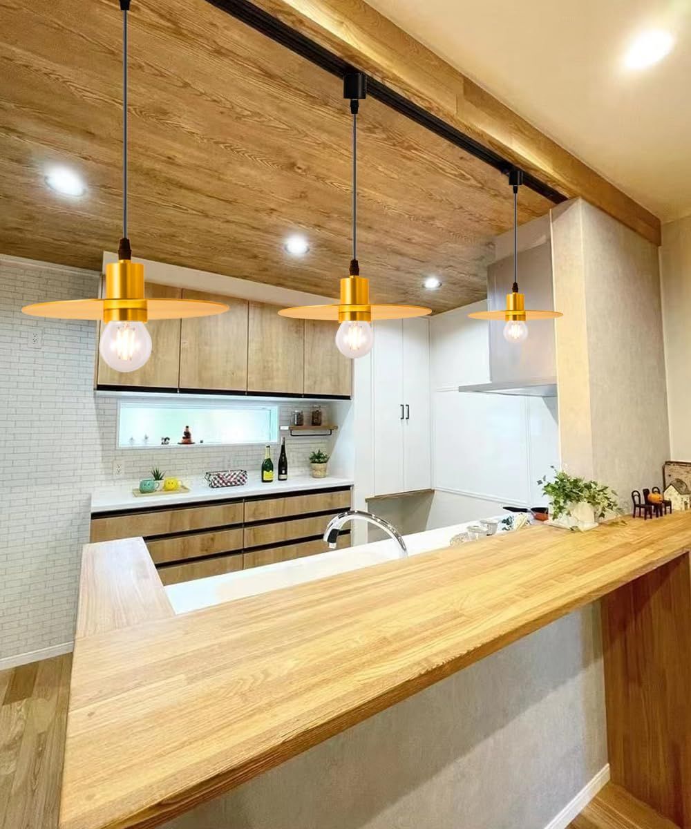 使用場所:小ぶりな直径21cmのシェードは、玄関や洗面所などでは灯すようにひとつだけを吊るして。リビングや寝室などのリラックススペースでは椅子の近くに吊るして使用するのもおすすめです。キッチン・ダイニングなど幅のある場所で使用する場合は、複数個を並べて設置するとバランス良く収まります。