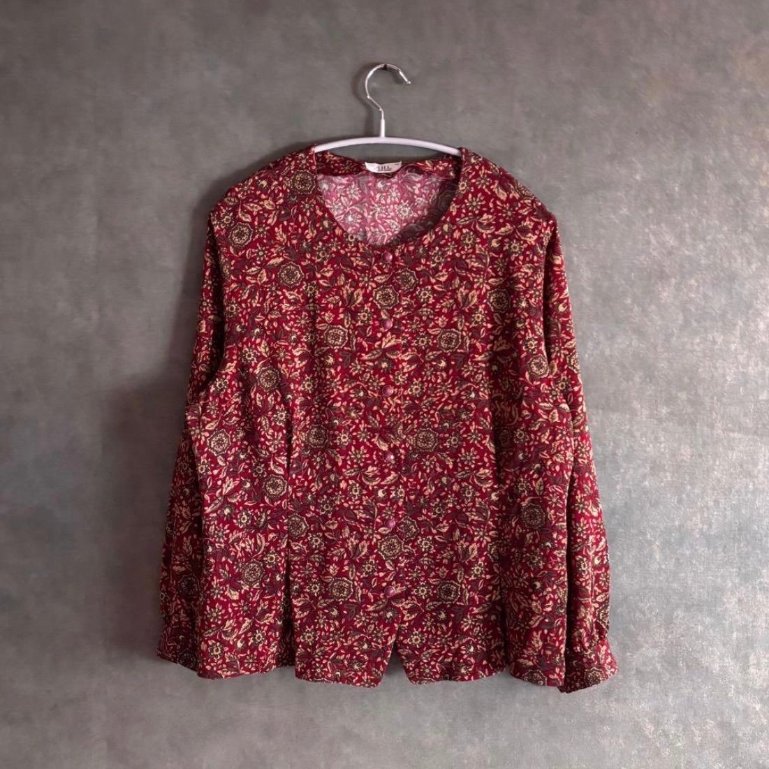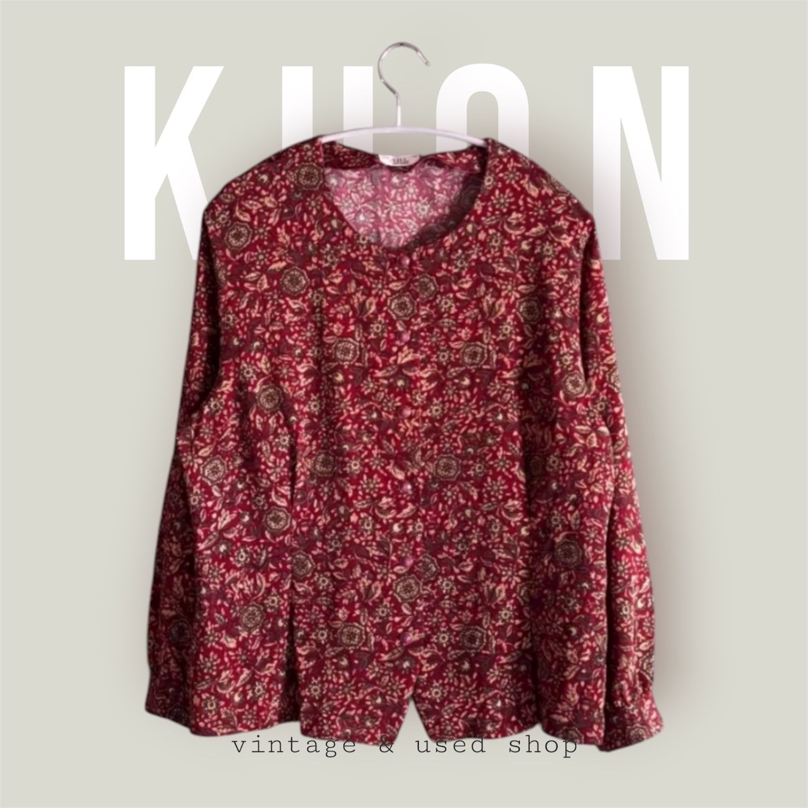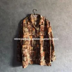 昭和レトロ総柄シャツ 長袖柄シャツ ヴィンテージコーデ レトロコーデ 古着 大人古着コーデ USED