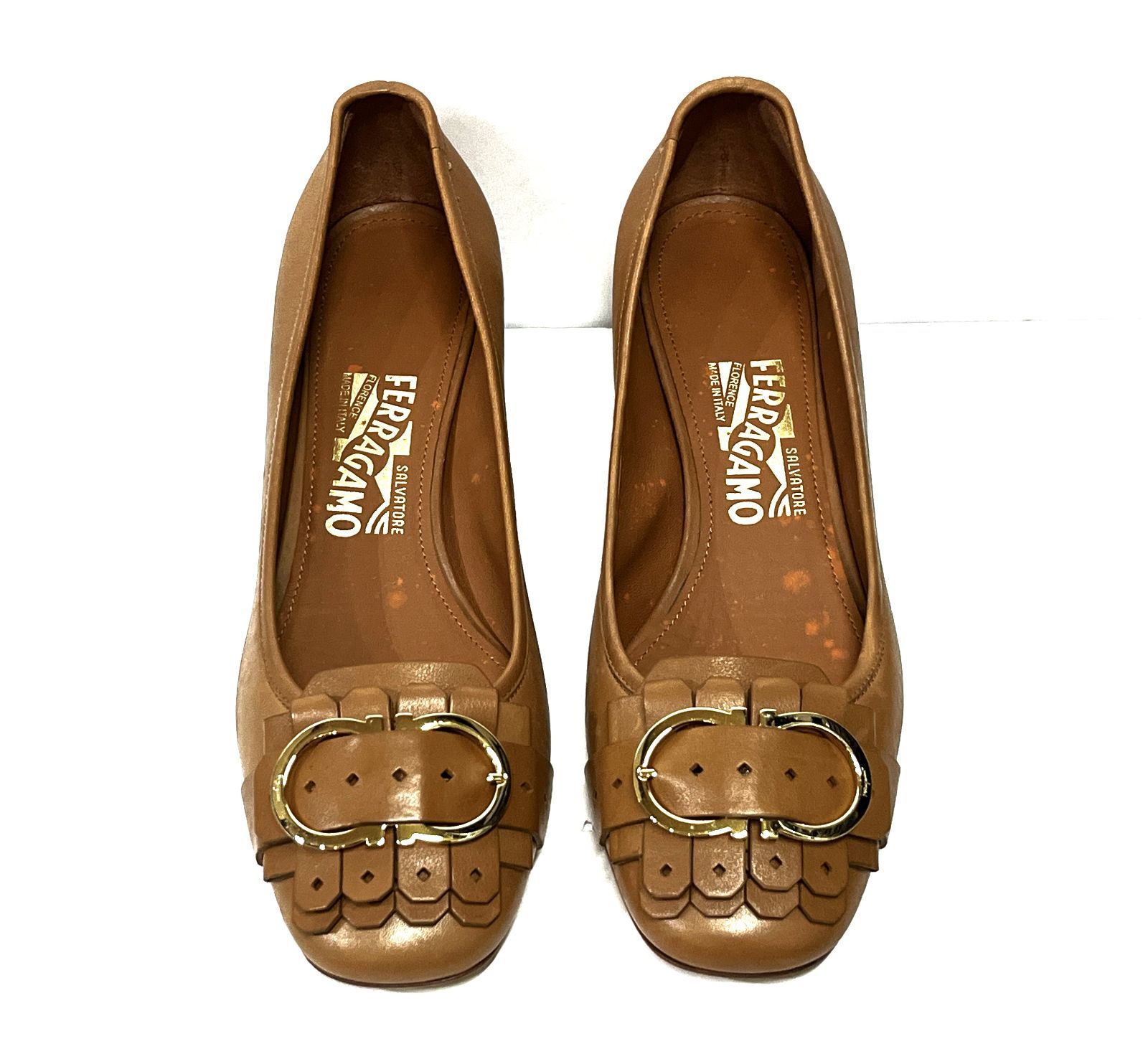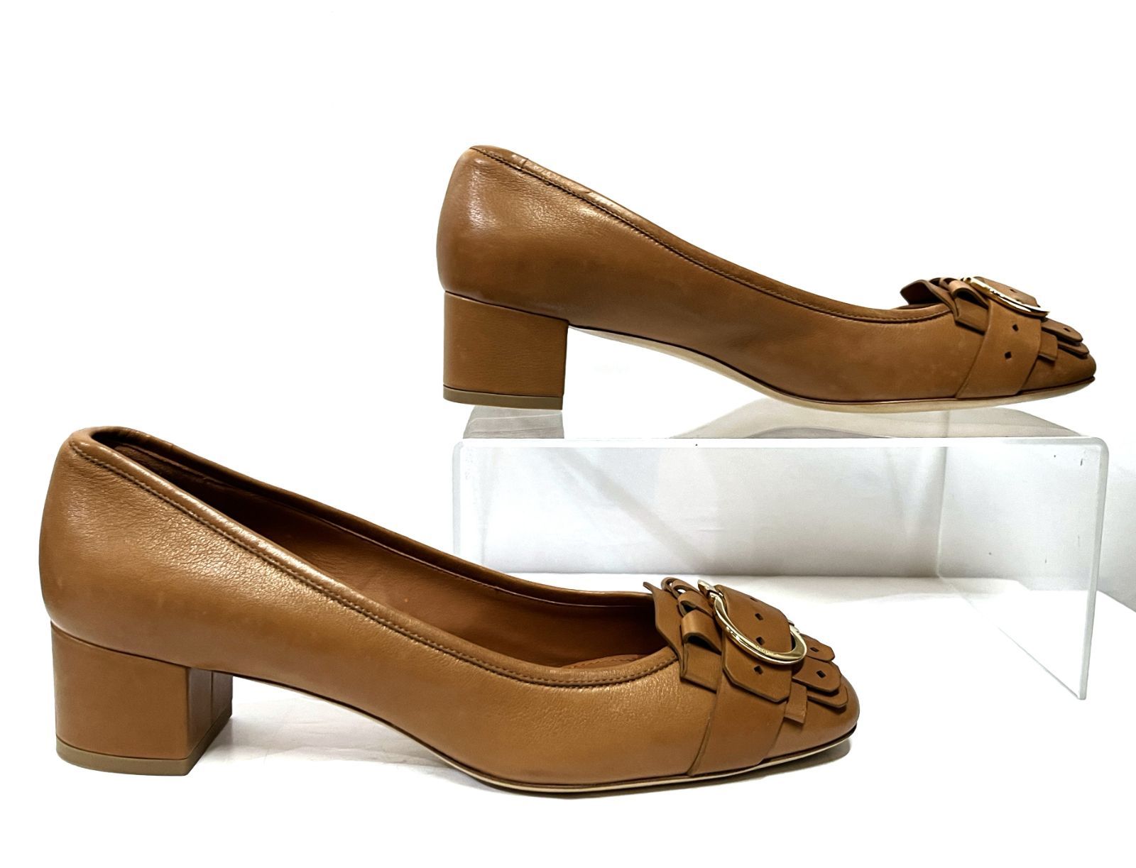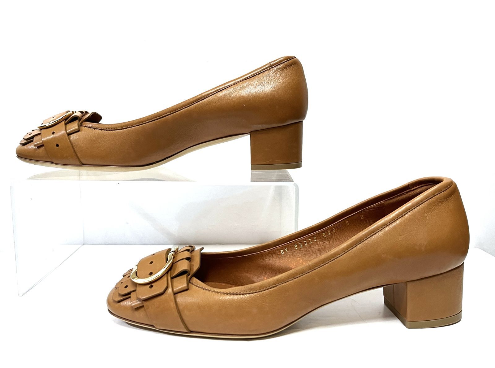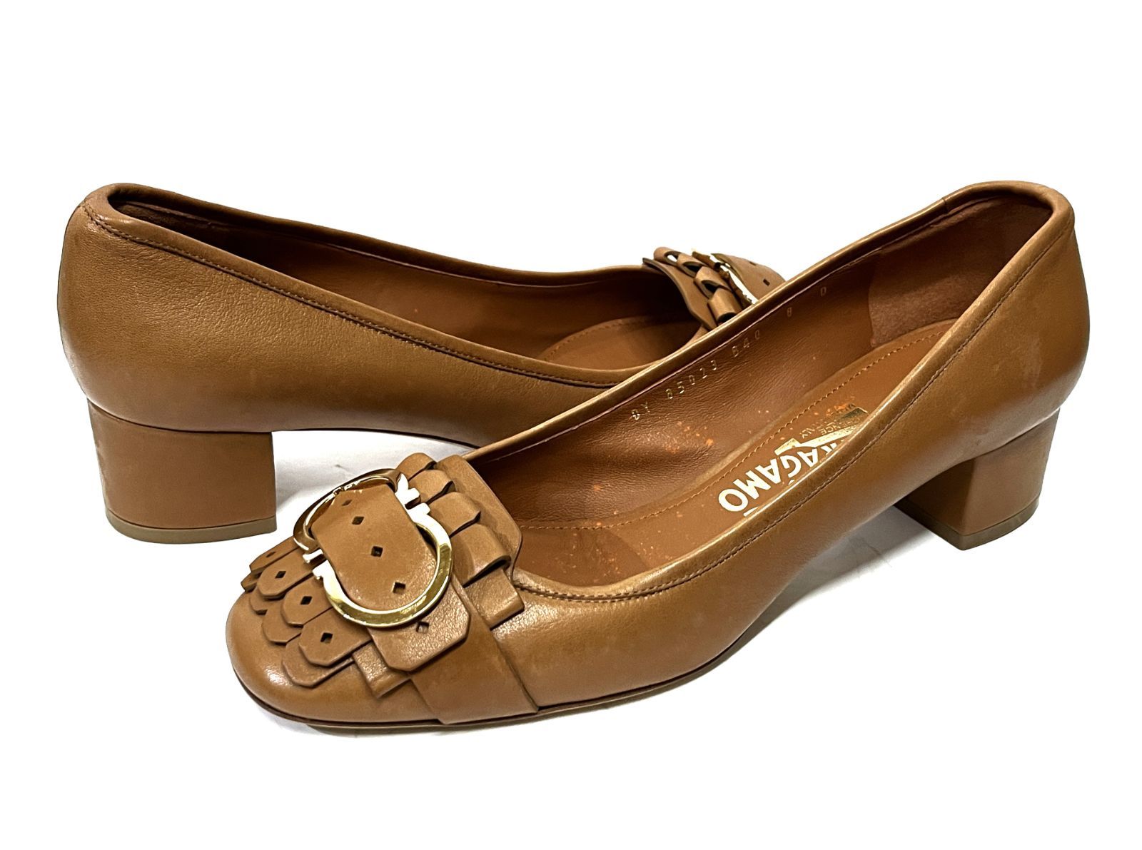 8D(25cm)◆Salvatore Ferragamo|サルヴァトーレフェラガモ ELGA 40 エルガ ガンチーニ 太ヒール パンプス 靴