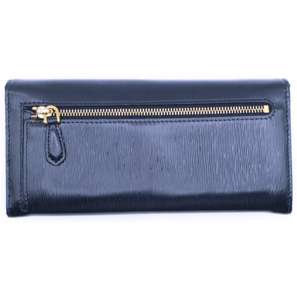 PRADA (プラダ) ロゴプレート ヴィッテロ レザー ロングウォレット 長財布 ゴールド金具 ブラック 1MH132
