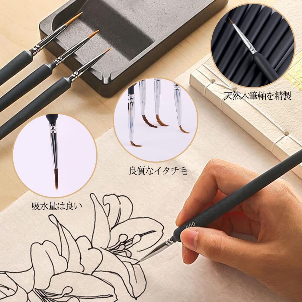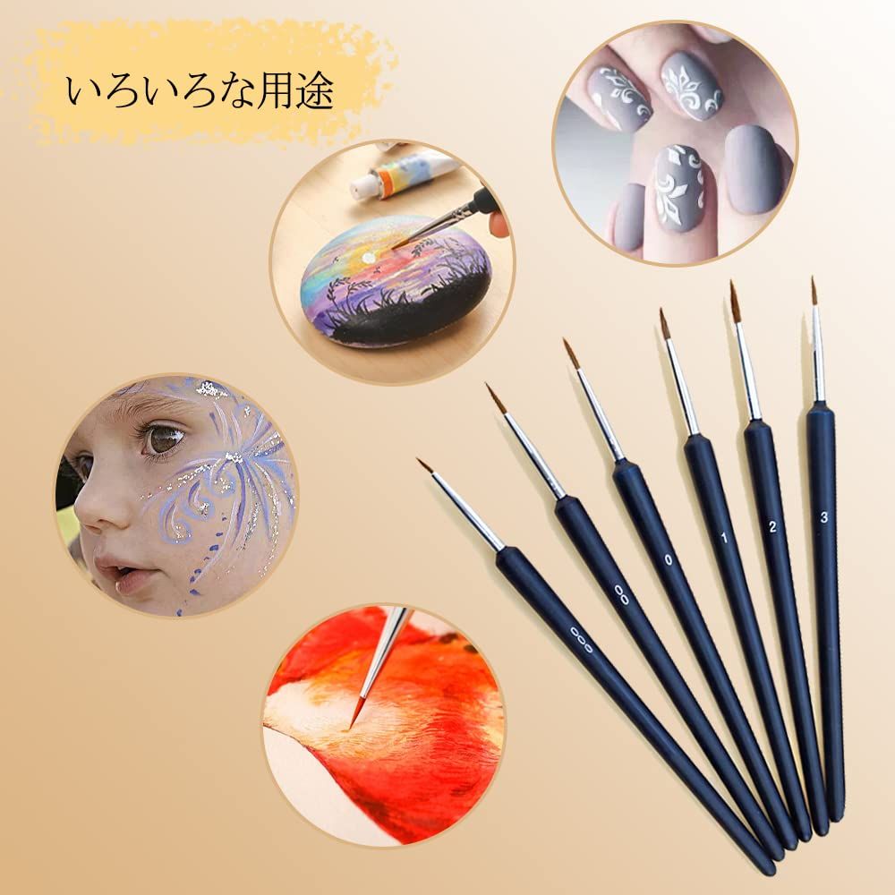 DFsucces 極細美術画線筆 6本 面相筆 塗装筆 絵筆 水彩筆 油絵筆 勾線筆 水彩画 水墨画 日本画 画材 (極細-黒)