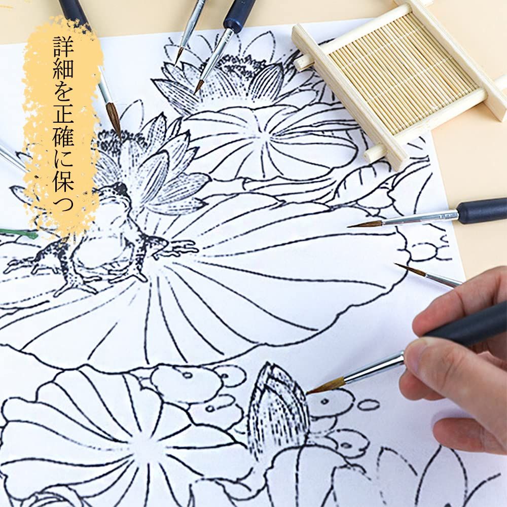 【種類が多い】#000、#00、#0、#1、#2、#3を6サイズをご用意しておりますので、さまざまな絵画需要を満たすことができます。精巧なパターンを描いたり、大面積の色を塗ったりするために、この製品は適切な筆を提供します。