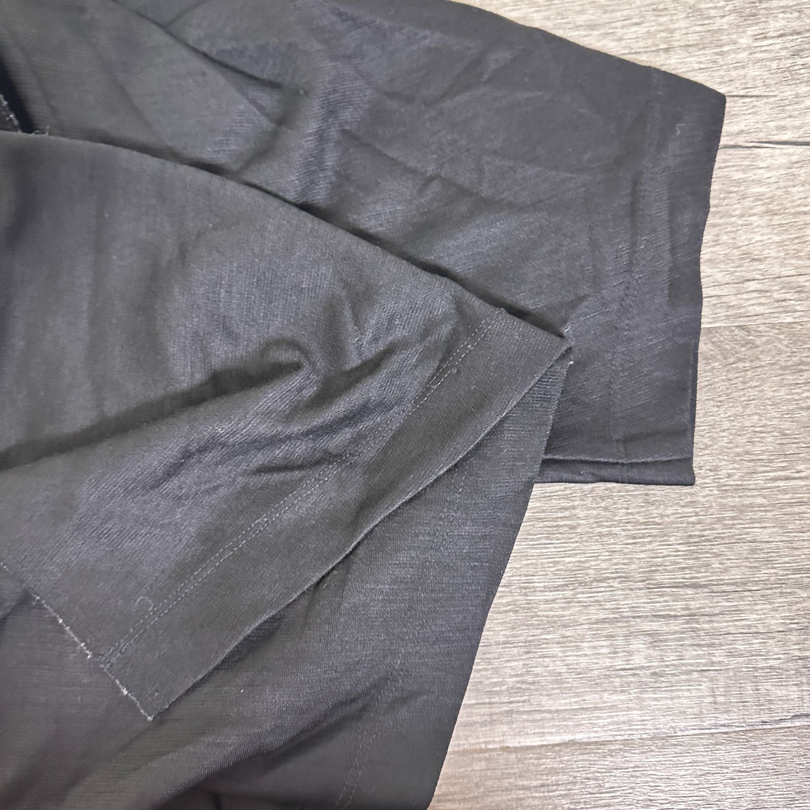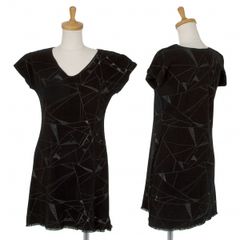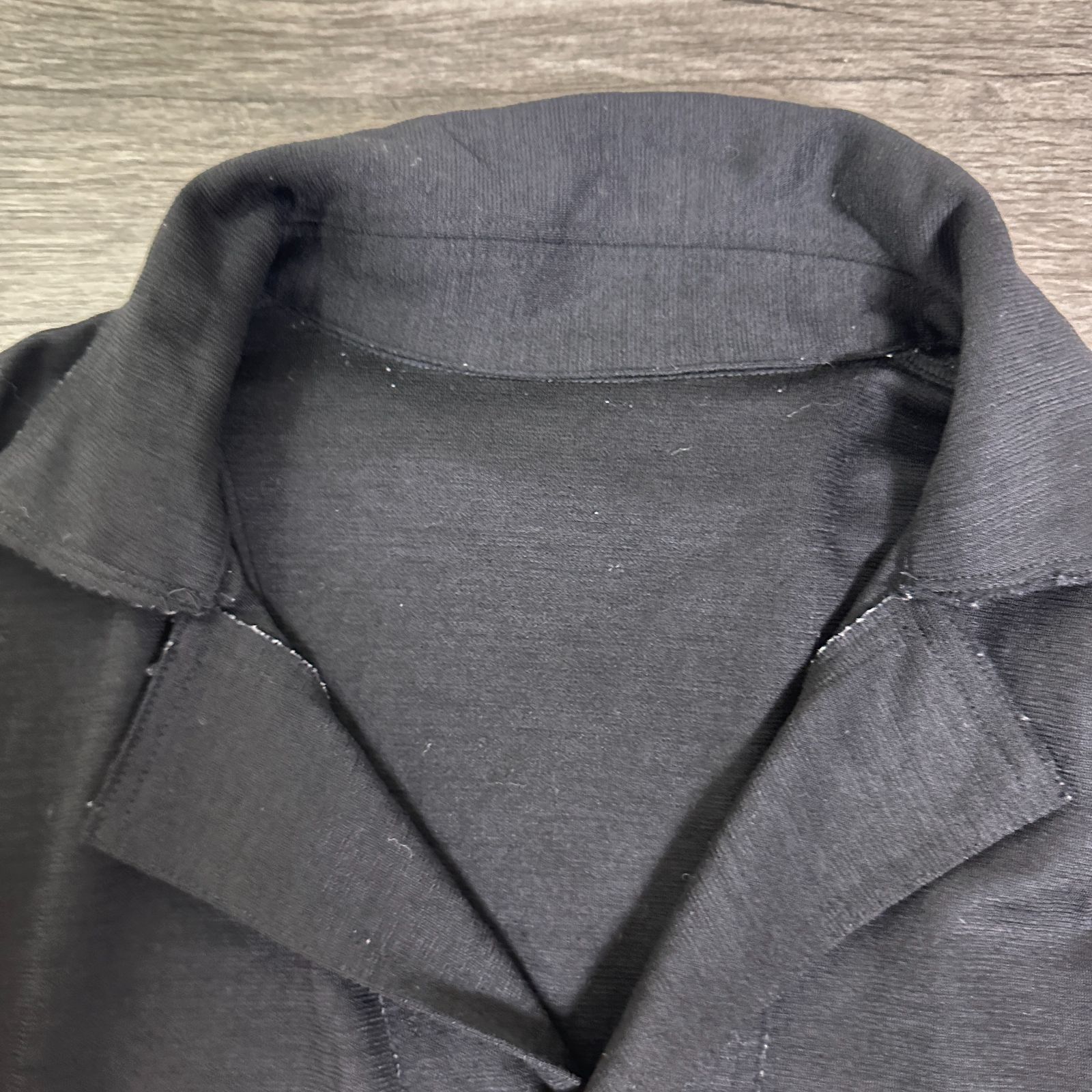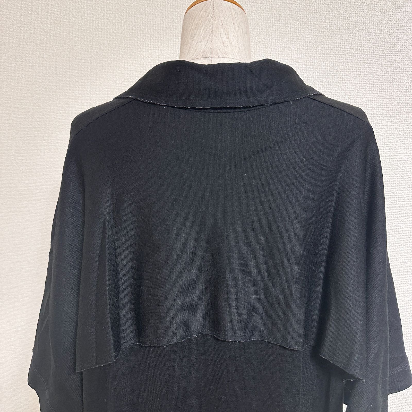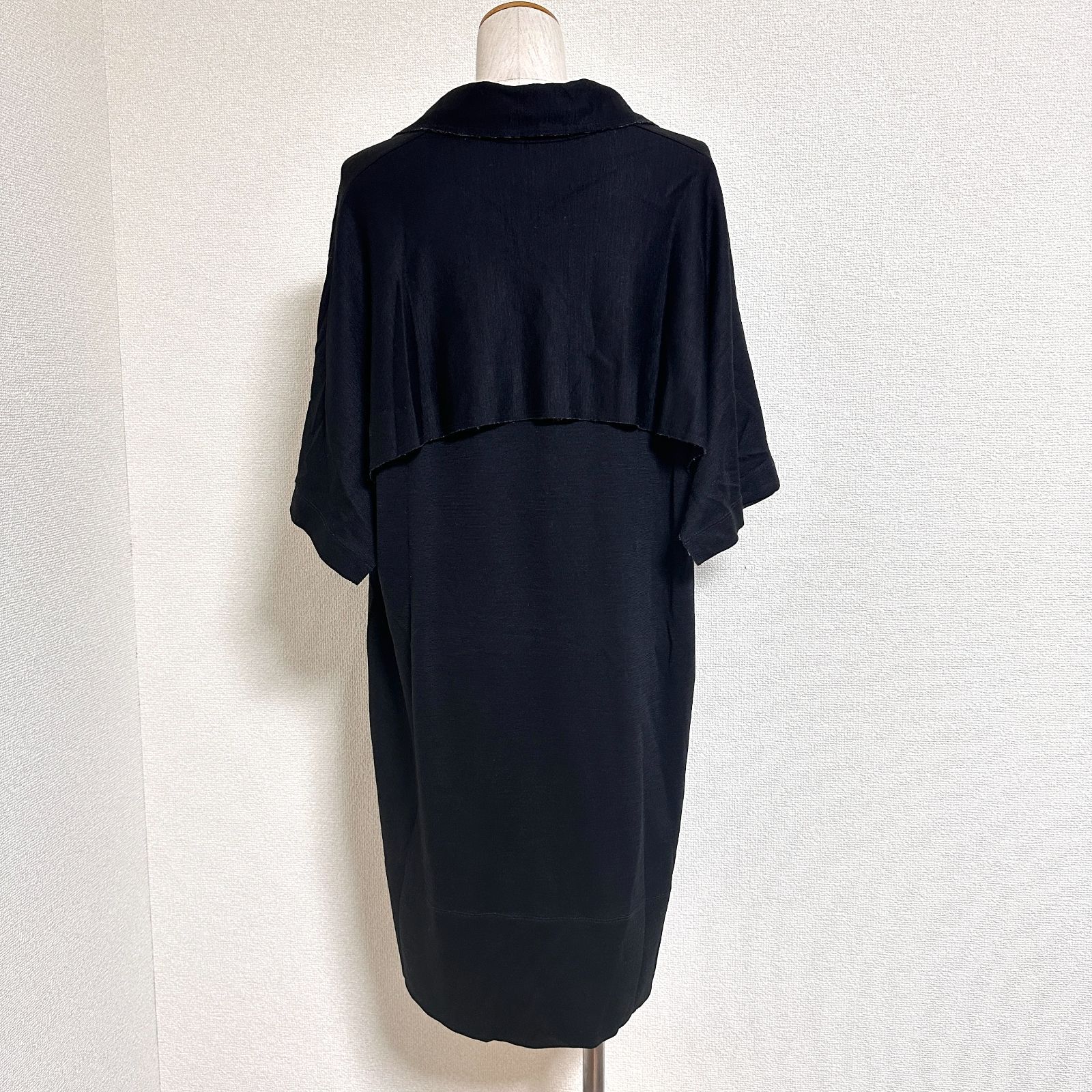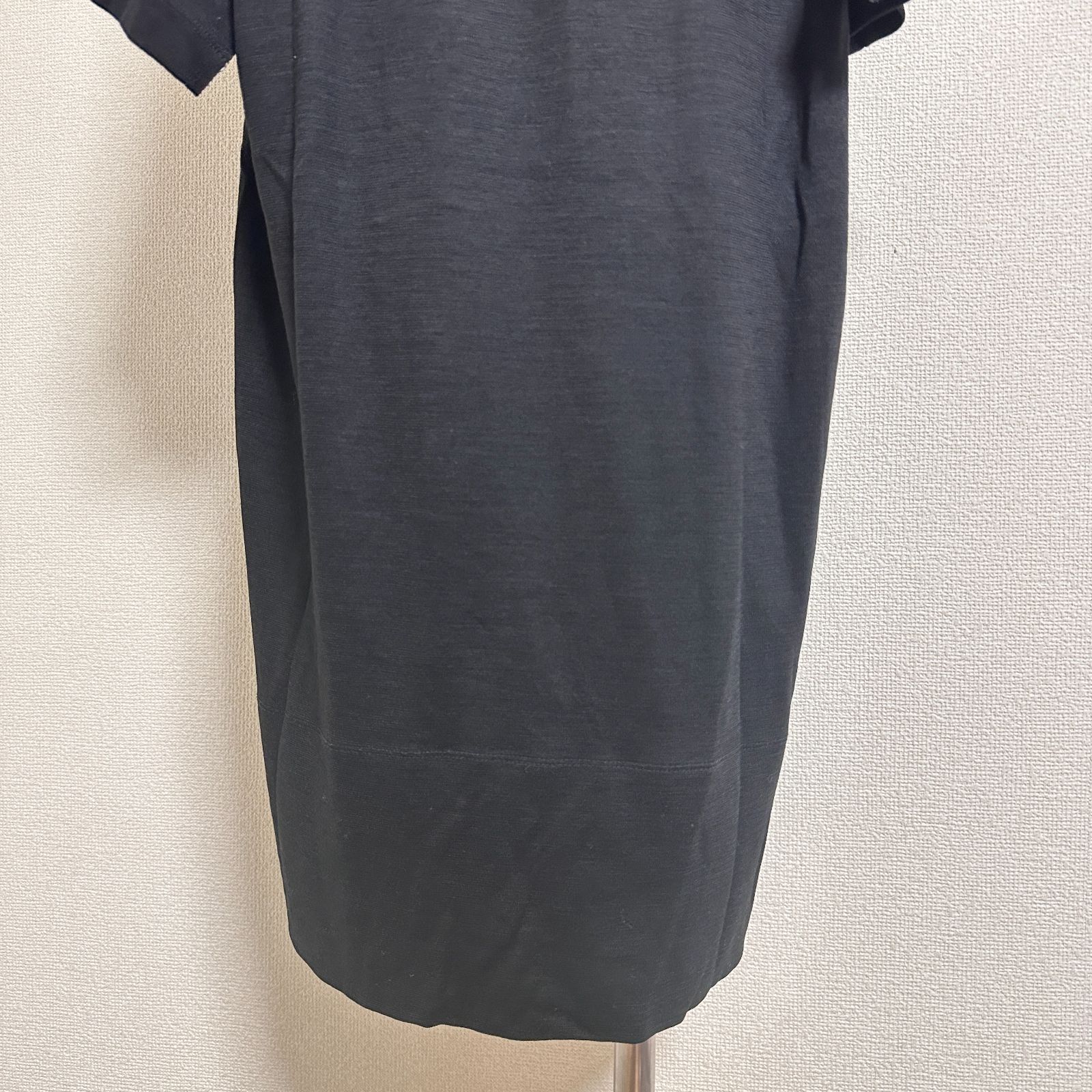 イッセイミヤケ ISSEY MIYAKE 半袖 オープンカラー ウールジャージーチュニックワンピース ひざ丈 カットソーワンピース ポケット付き バックヨークデザイン ブラック FREE