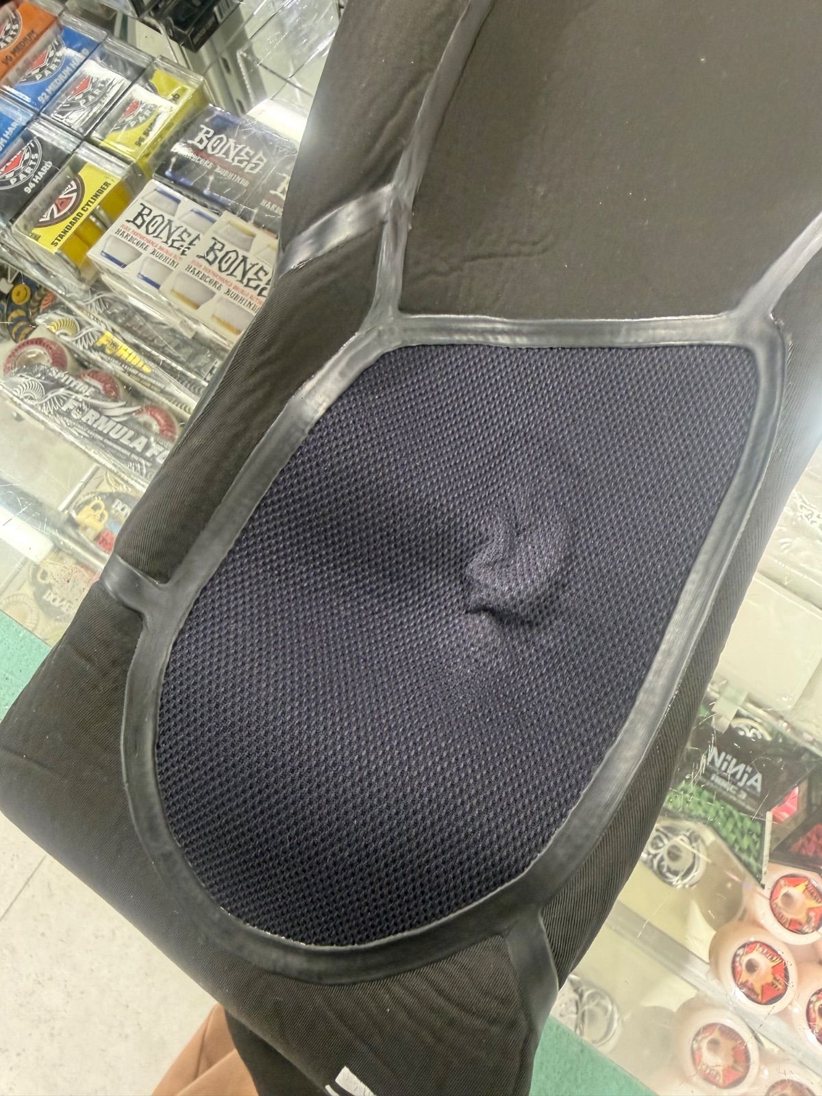全体的に状態が悪いです、首周り使用と経年によりほつれあり、右腕~胸パネル接合部分使用による小さな破れあり,ウェットボンドなどで補修が必要です、左足膝部パネル内部破損ボンドなどでの補修もしくはパネルの交換が必要です、袖部ほつれあり、右肩部擦れにより生地が薄くなってます、その他水に入れて検査することができない為不明ですが浸水部分がある可能性がございます。