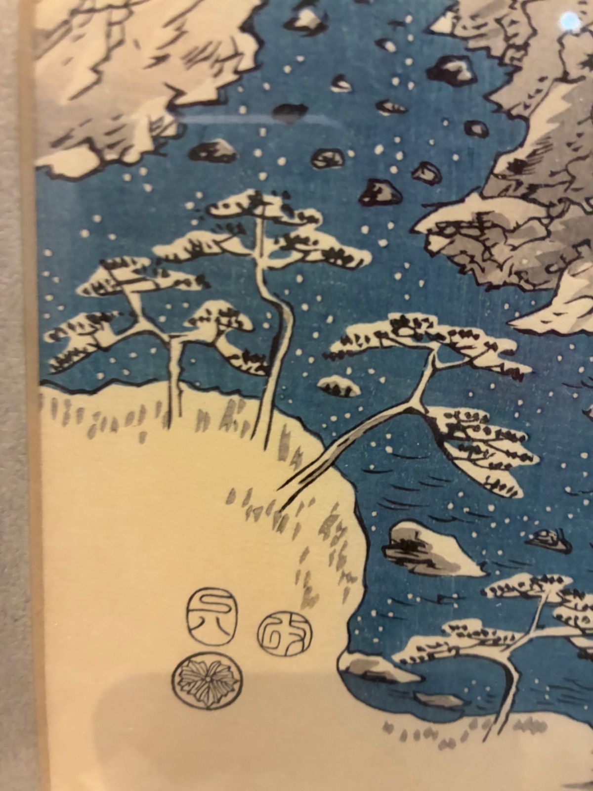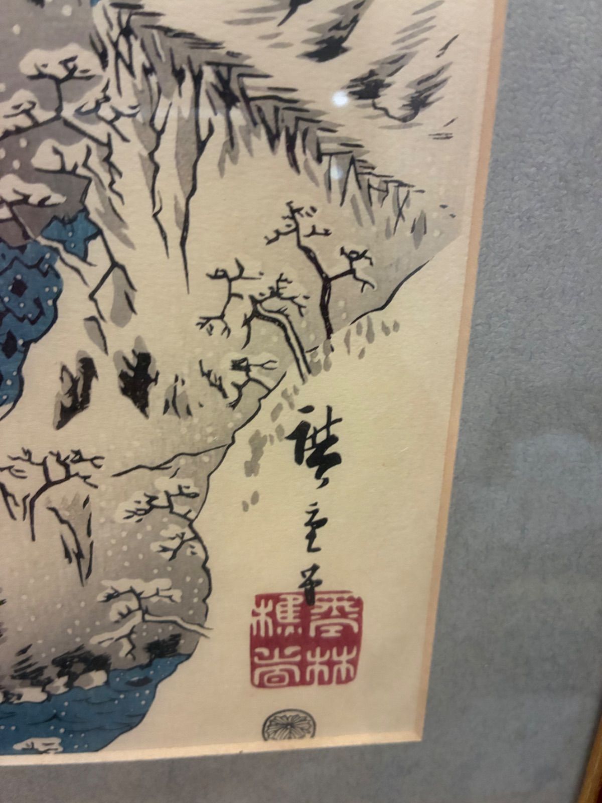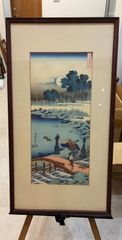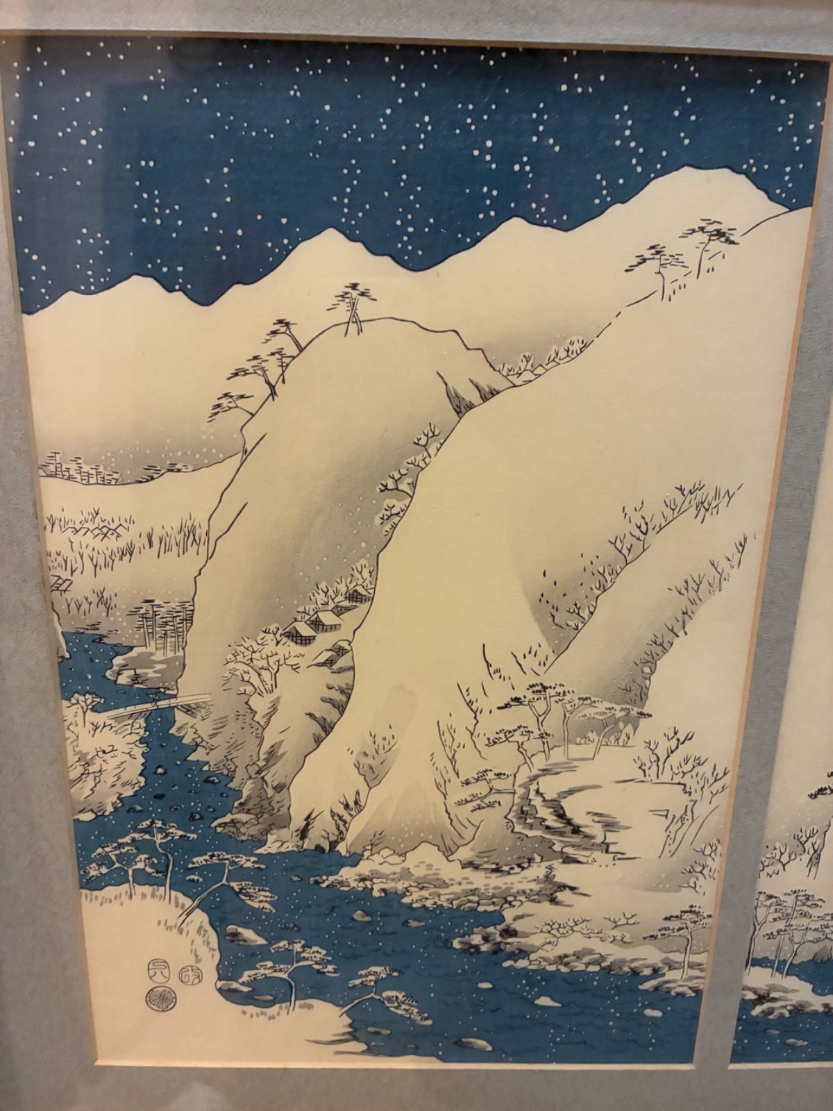 浮世絵 木版画 安藤広重 木曽路之山川 3枚組 骨董 額装 額入り
