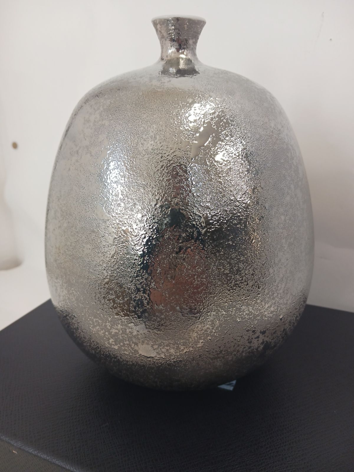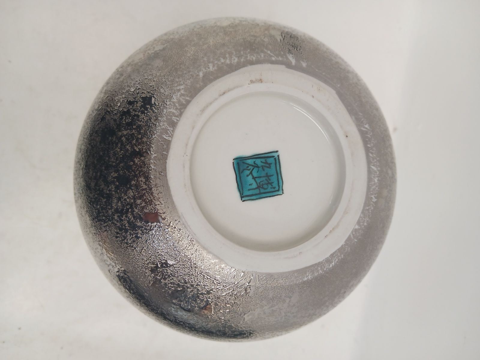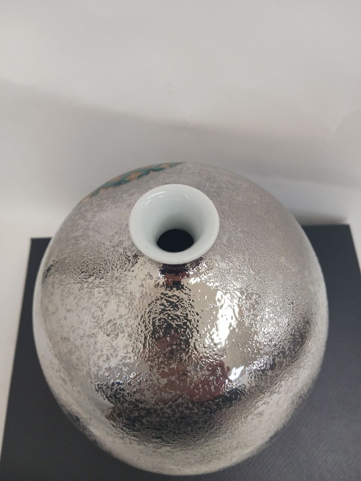 銀彩部分の独特の風合いや色ムラは、九谷焼の表現によるものです。