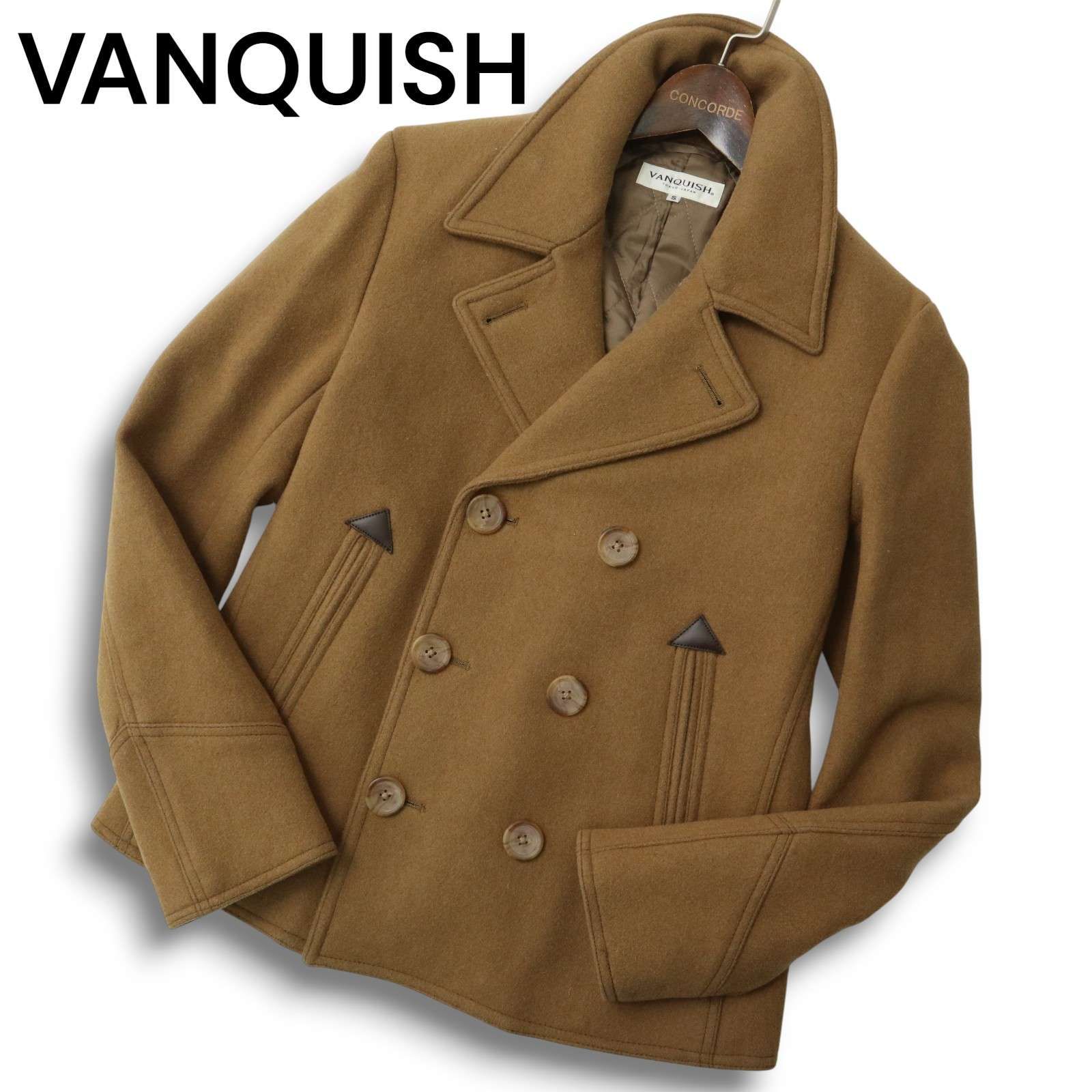 VANQUISH ヴァンキッシュ 秋冬★ ウール 中綿 スリム ピーコート Pコート Sz.S メンズ