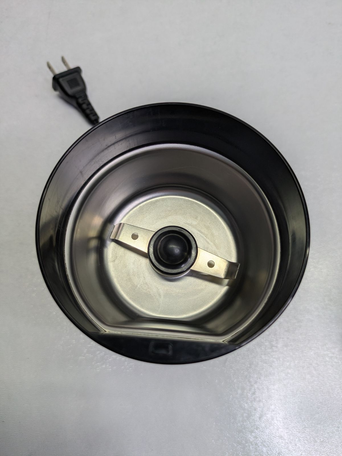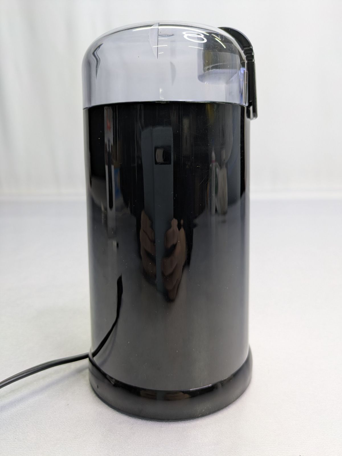 通電し、短時間の回転まで動作確認しました。全体的に写真に写らない細かい線傷があります。フタのスイッチ部分に取り切れないコーヒーの粉が少し残っています。細かい傷や汚れ、使用感はありますが、比較的良好な商品です。商品画像でご確認ください。元々入っていた外箱(傷みあり)にお入れして発送いたします。