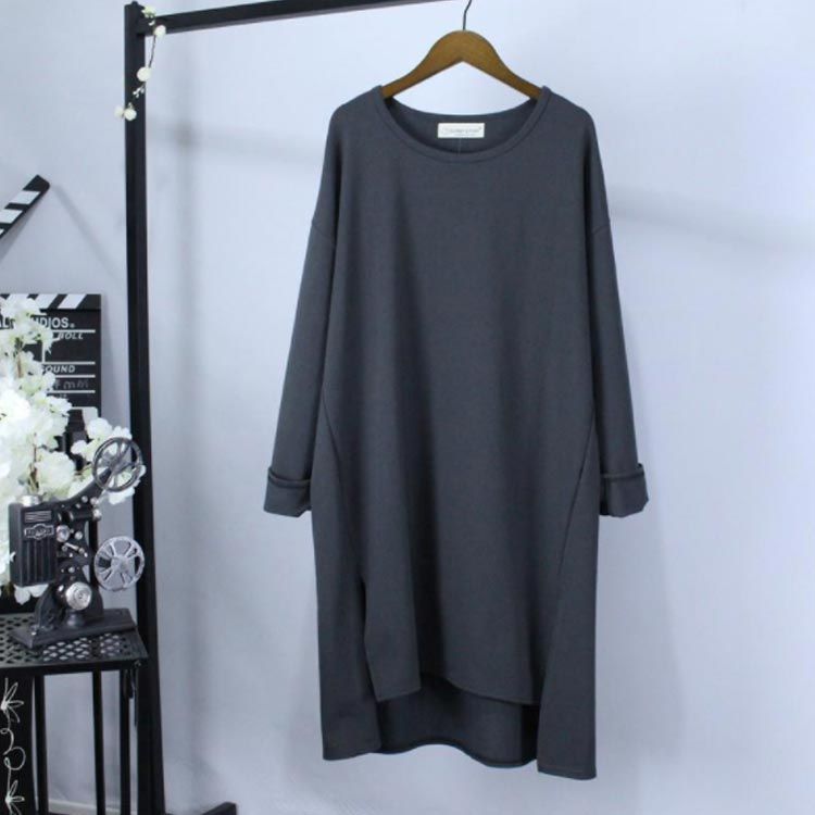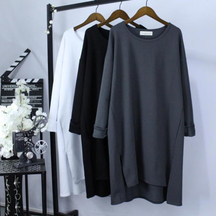 まるでチュニックのよなヒップまですっぼり隠れる丈感なのでさりげなく体型もカバー。