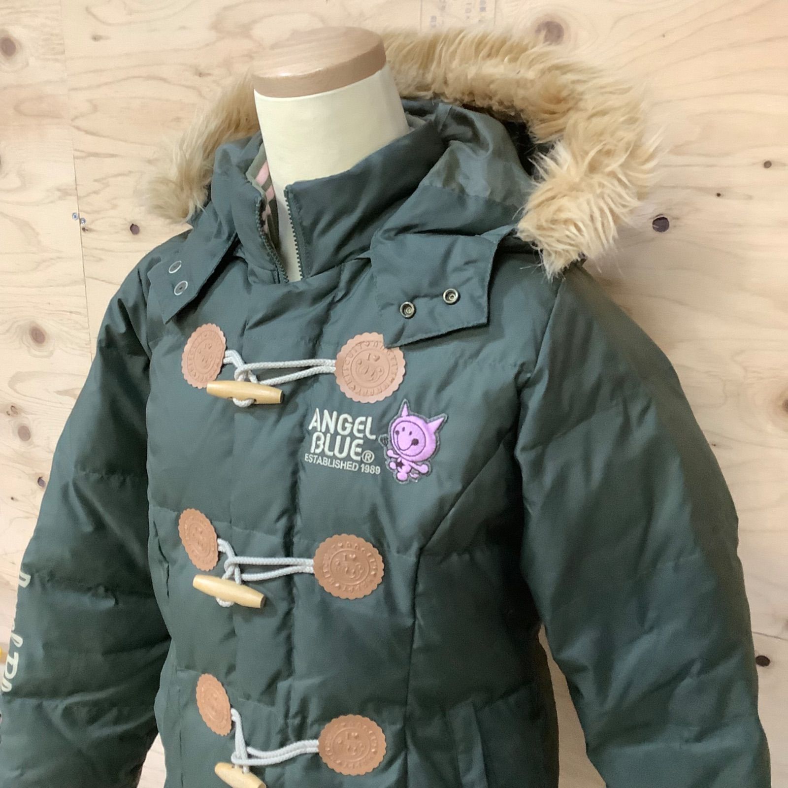 古着 エンジェルブルー ダウンコート ダッフルコート サイズM(150㎝) カーキ