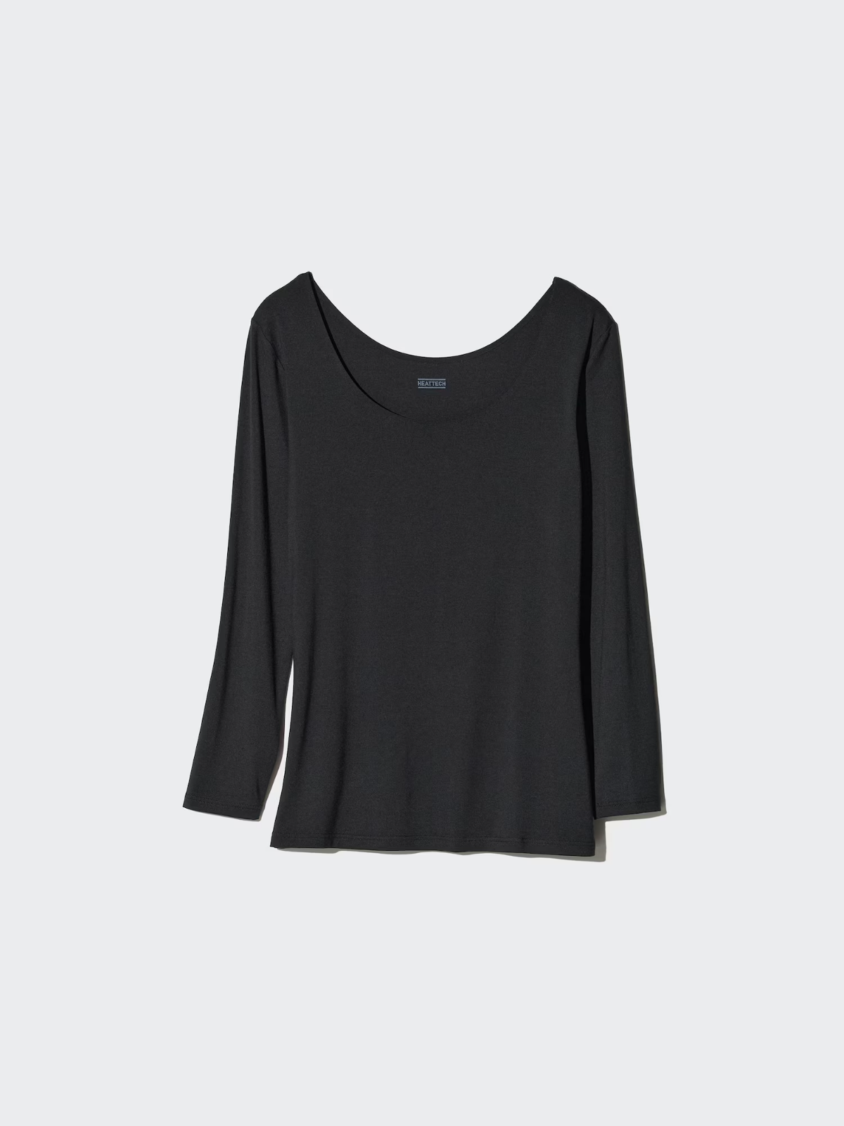 - 8分袖と程良く開いたUネックでアウターから見えにくい。