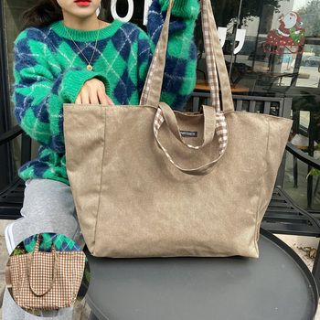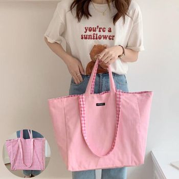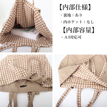 レディース 2way ハンドバッグ 大容量 カジュアル 肩掛けカバン 風 マザーズバッグ 手提げ かばん 両面用ギンガムチェック鞄 帆布レジャー旅行 エコ ショッピング
