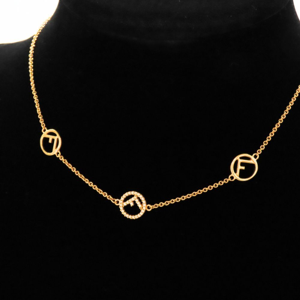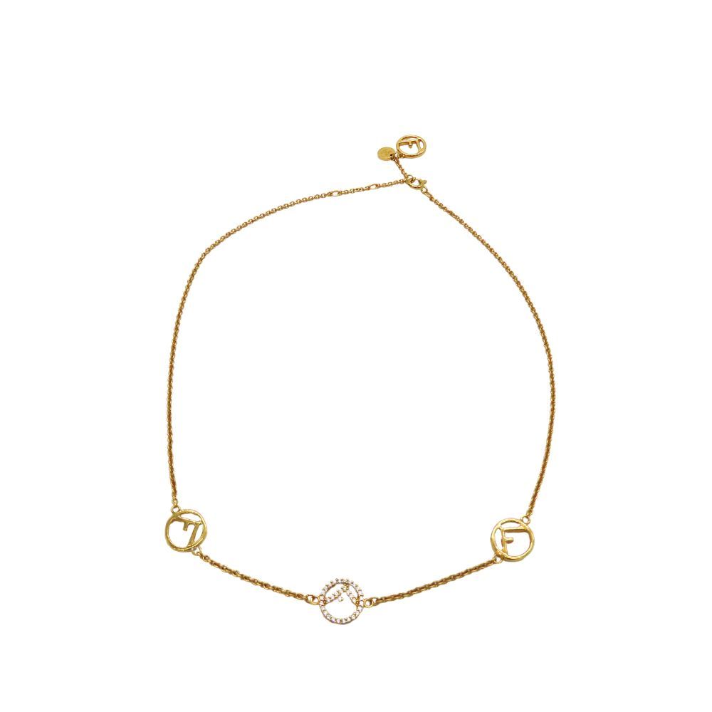 【中古】 FENDI フェンディ 約40cm Fロゴ ラインストーン エフ イズ フェンディ サークルF ネックレス ゴールド レディース 上品 華やか A2504861 【無料ギフトラッピング承ります】