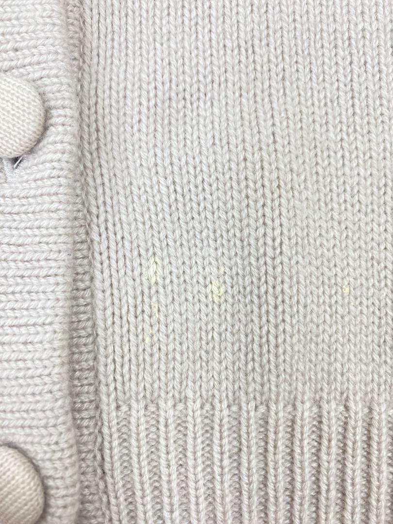(写真4.5枚目)前たて付近にシミ汚れ、後ろ身頃サイド毛玉あります。