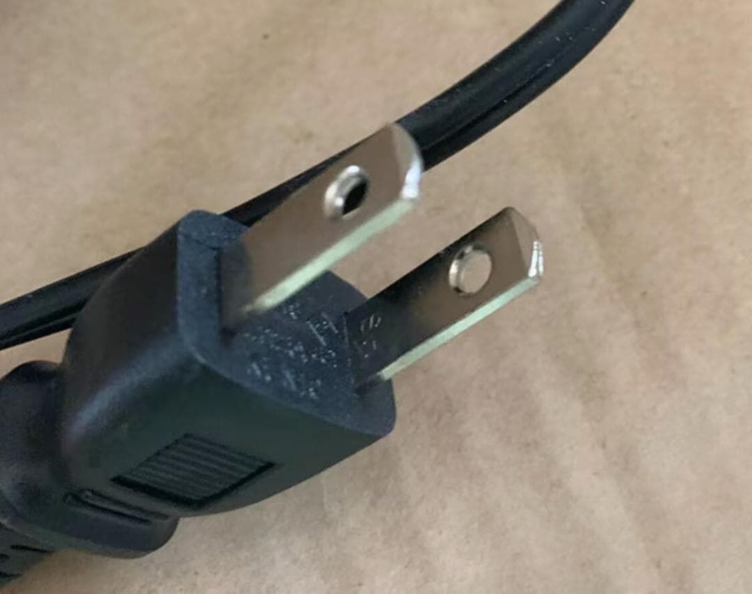②電源プラグの「幅が広い方」をコンセントのアース側に差し込みます。