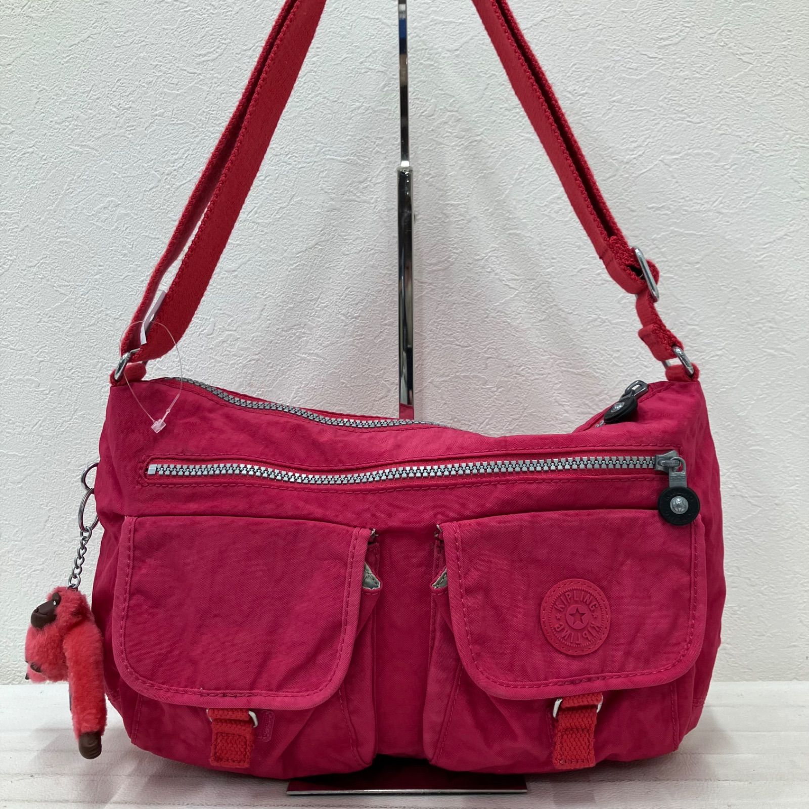 Kipling キプリング ショルダーバッグ 肩がけ 斜めがけ クロスボディ ナイロン ピンク チャーム モンキー ゴリラ