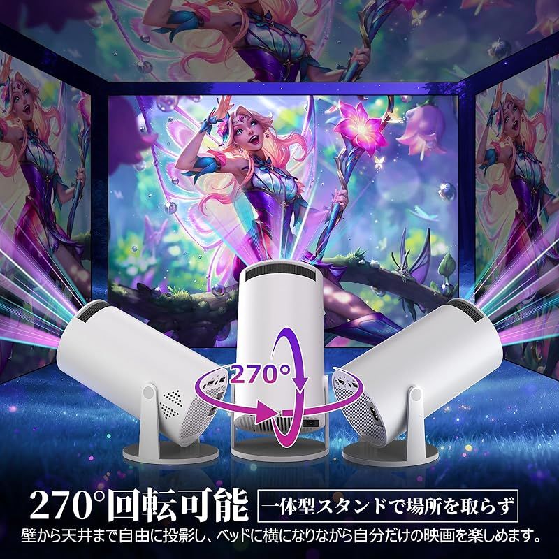 商品名:PliPla プロジェクター 家庭用【270°回転・18000LM・4K対応・Android TV搭載 最新登場! PSE認証済み】 プロジェクター 小型 高輝度 リアル1080P 天井投影 Wi-Fi6瞬間接続 Bluetooth5.4 HiFiスピーカー内