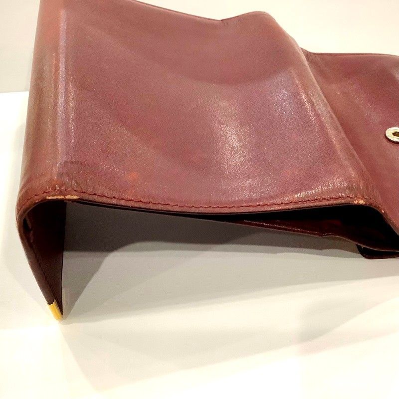 Cartier カルティエ 3つ折りガマ口財布 ボルドー×ゴールド金具 がま口緩い【中古】JA-25765