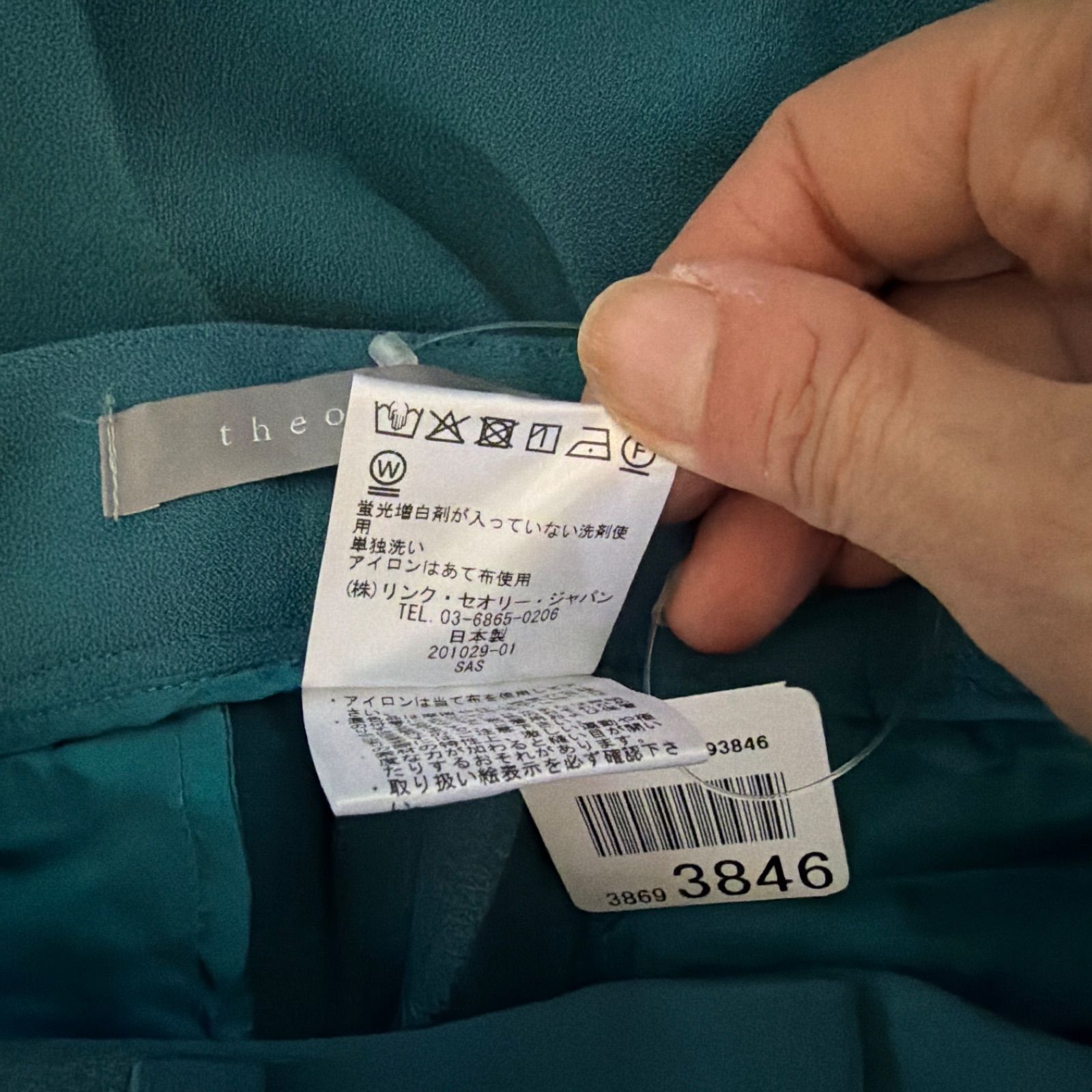 Z1664 theory luxe セオリーリュクス ロングパンツ レディース 38 ターコイズ ブルー グリーン タックパンツ ボトムス