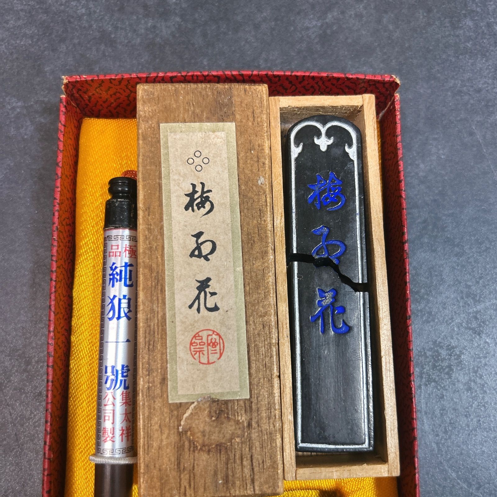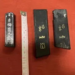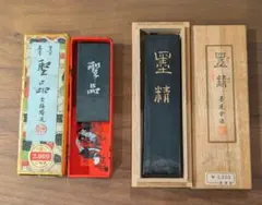 古梅園の固形墨「梅石花」、中国墨「国寶(蔣氏監製)」、書道筆が入った