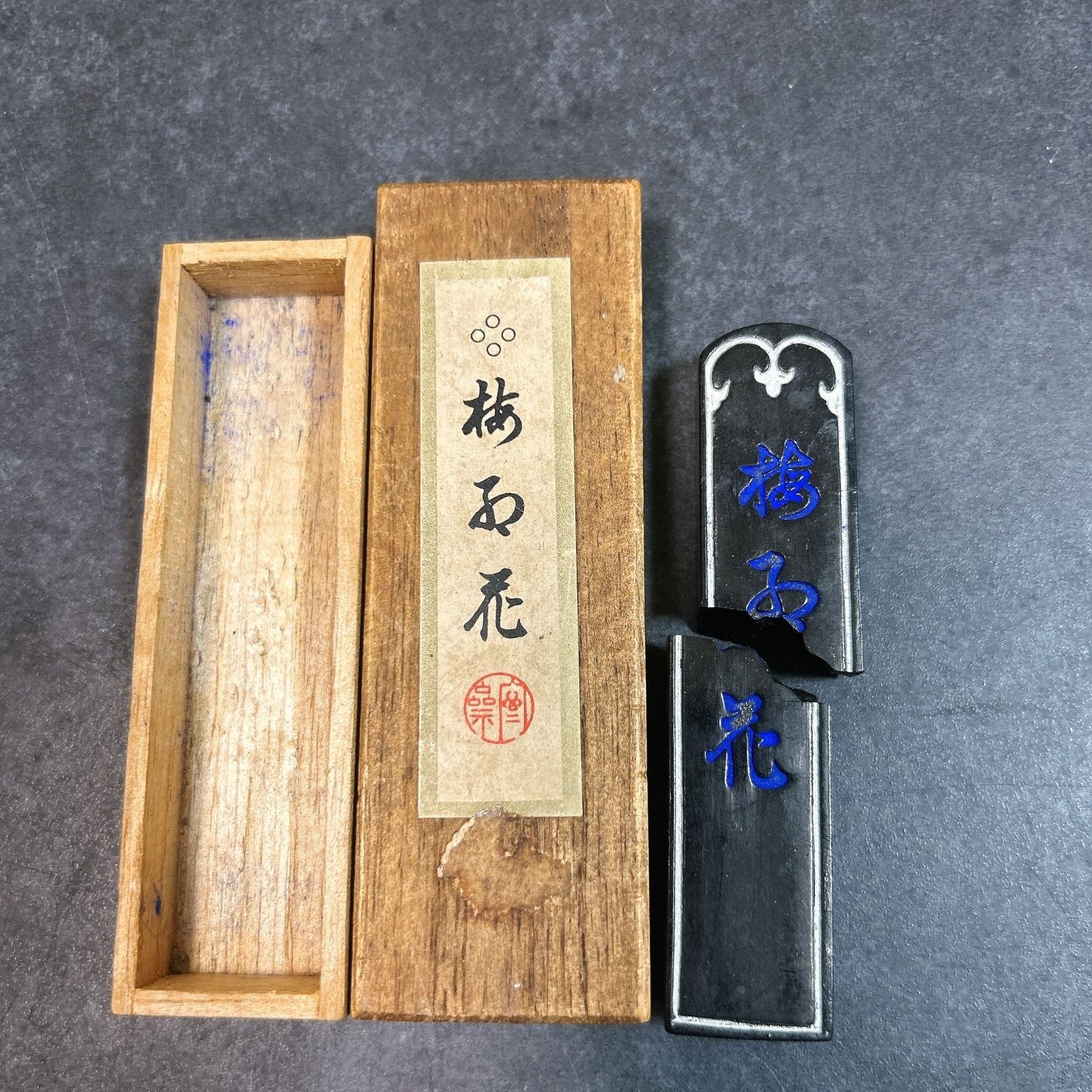 ・古梅園 墨「梅石花」…割れあり(ジャンク扱い)