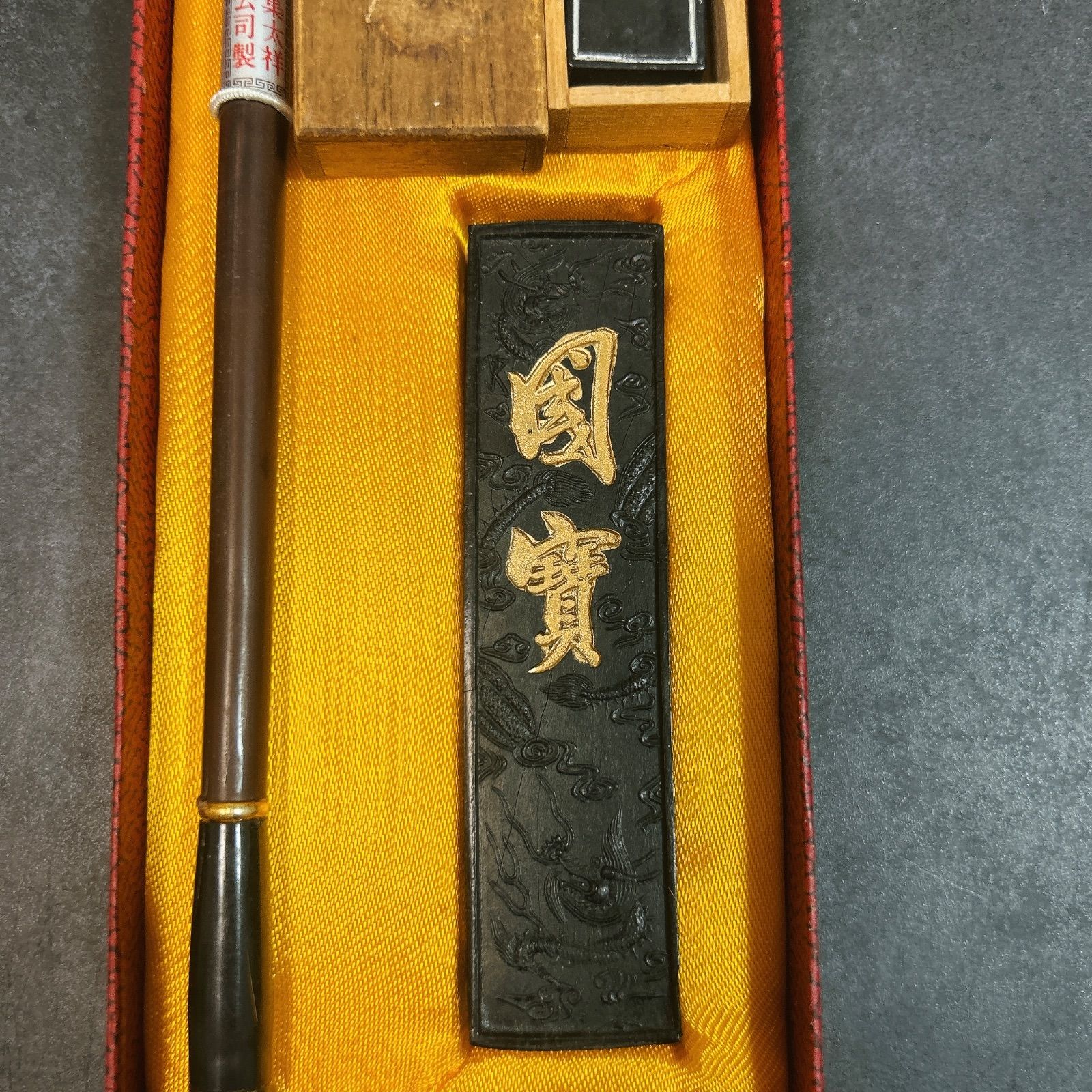 ・国寶墨は欠けなしの無傷品で、彫刻も金文字も綺麗です