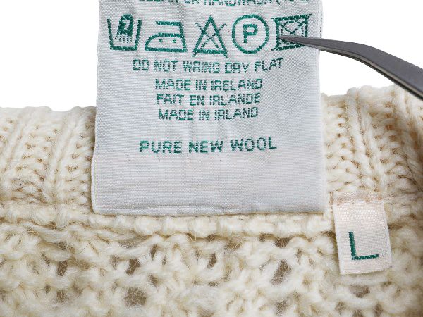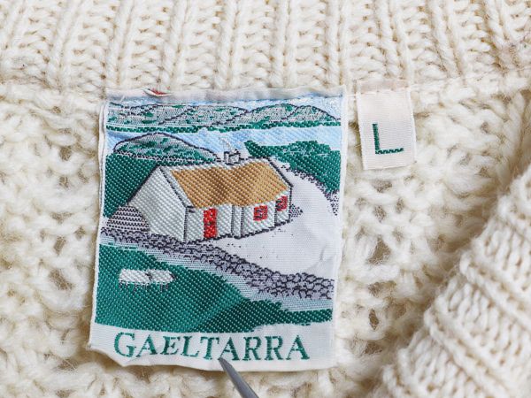【お得なクーポン配布中!】 アイルランド製 GAELTARRA フィッシャーマン ニット セーターメンズ L / ウール アラン ケーブル ローゲージ シンプル ゆったり ナチュラル