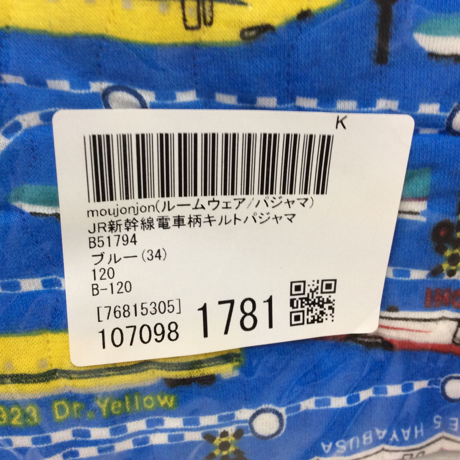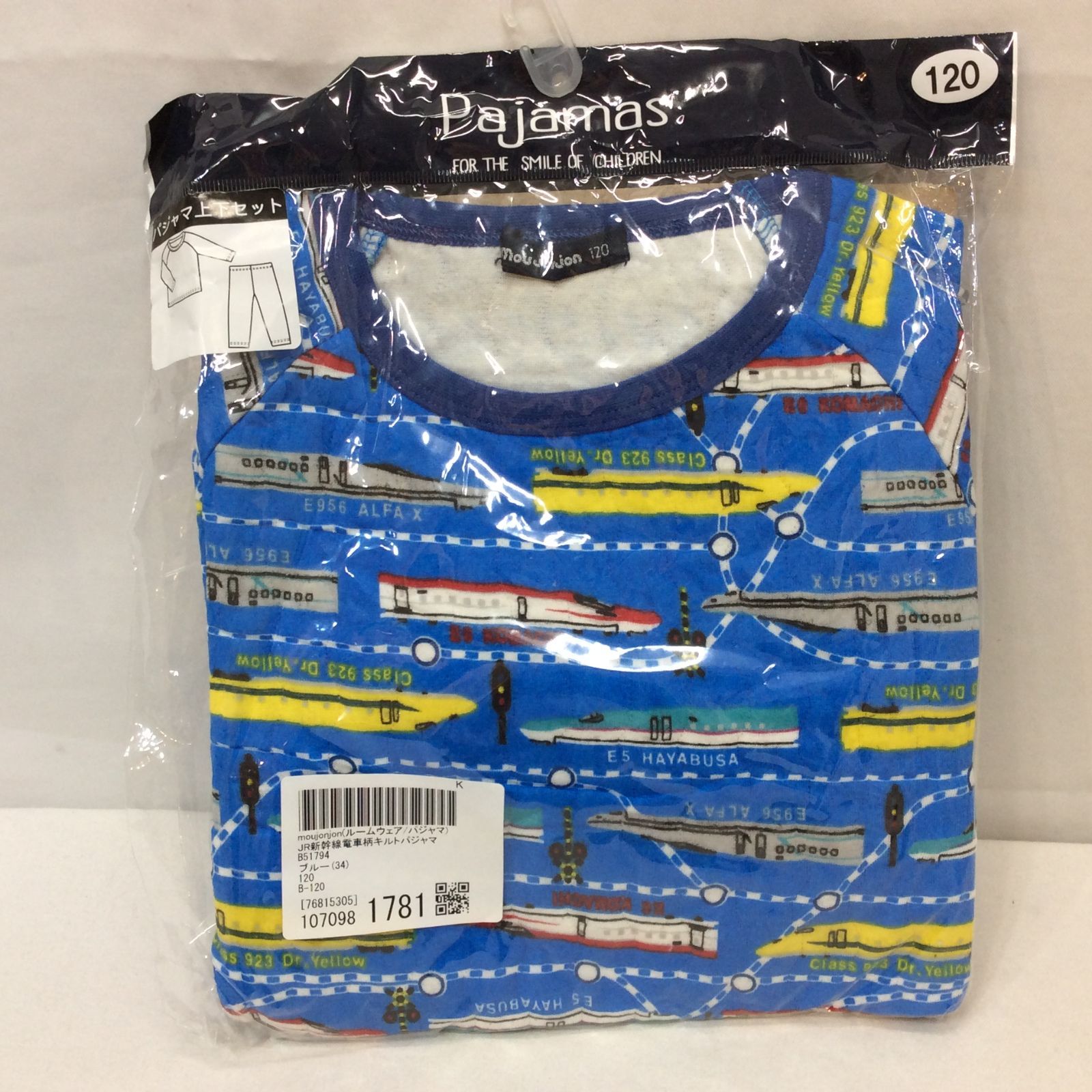 未使用☆moujonjon ムージョンジョン 子供 JR新幹線電車柄キルトパジャマ 120cm ブルー