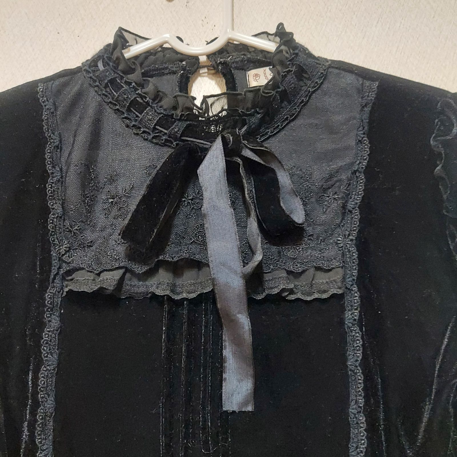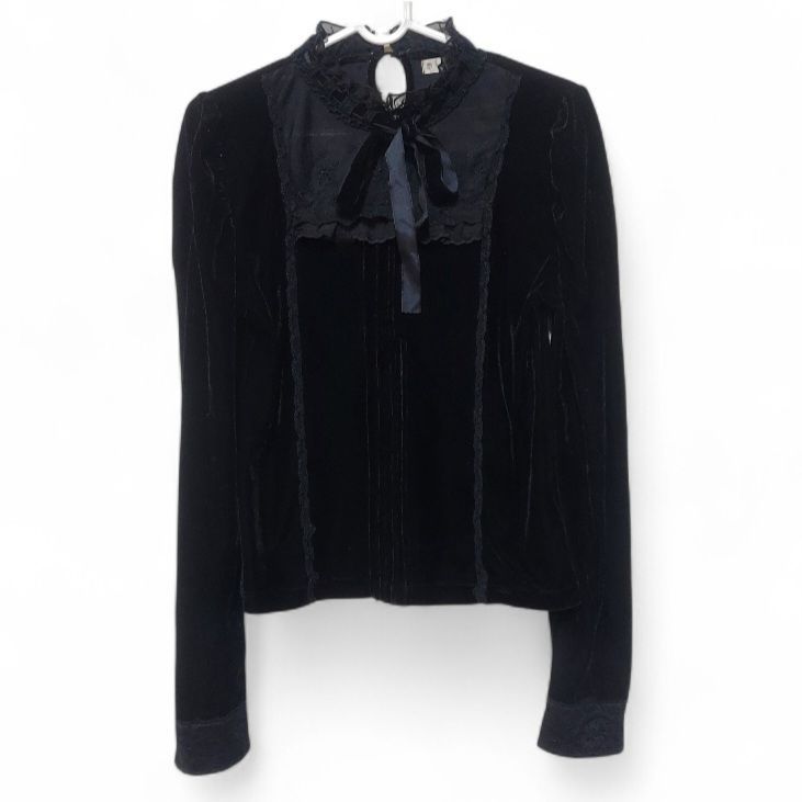 axes femme アクシーズファム 姫かわ 長袖シャツ ブラウス ふわふわ リボン レース 可愛い M 黒 ブラック ボア風