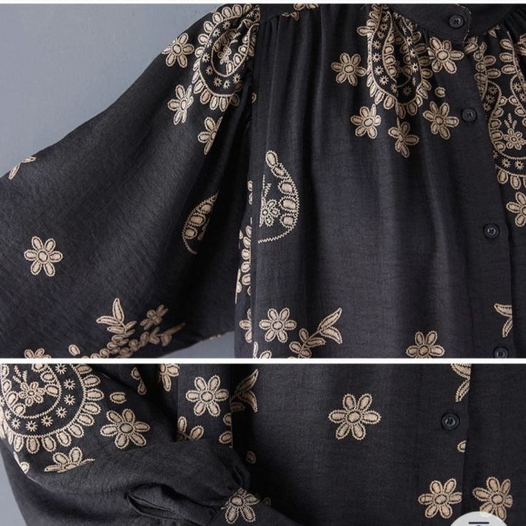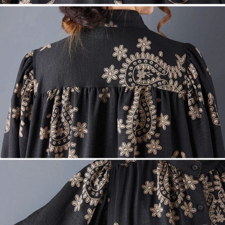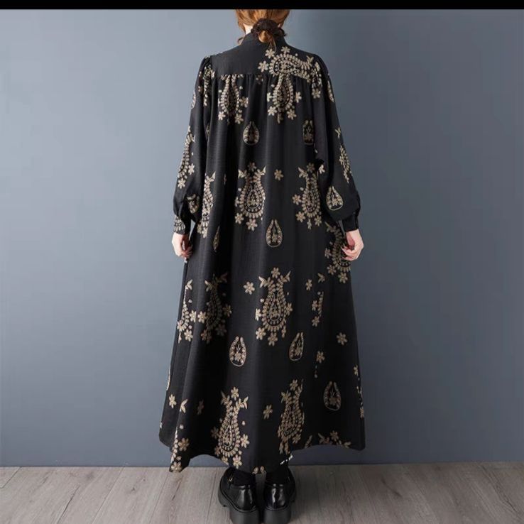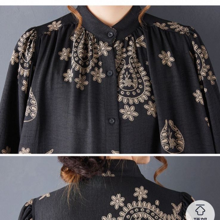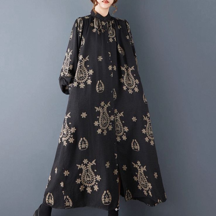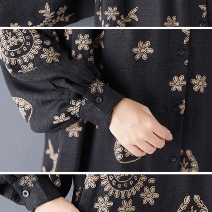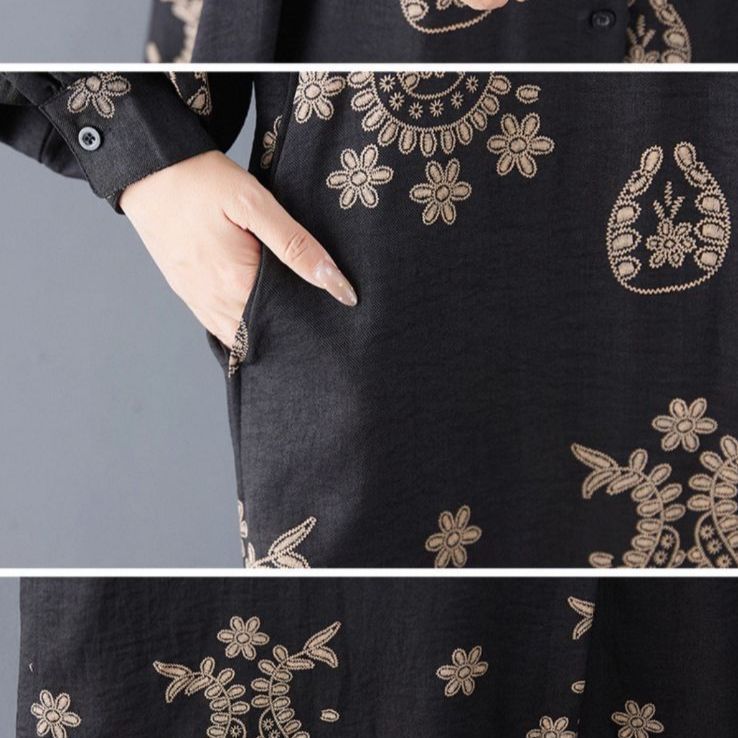 【新品】モード系 大きいサイズ レディースゆったりシャツロングワンピース 体型カバーAライン長袖花柄