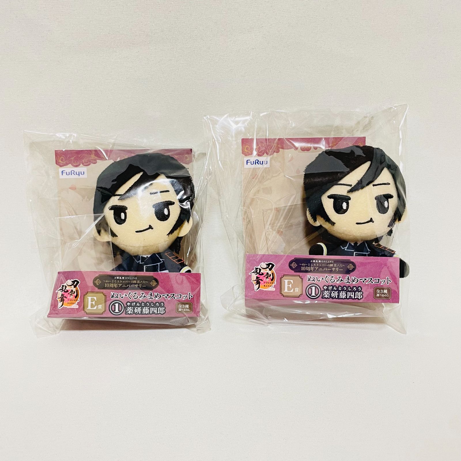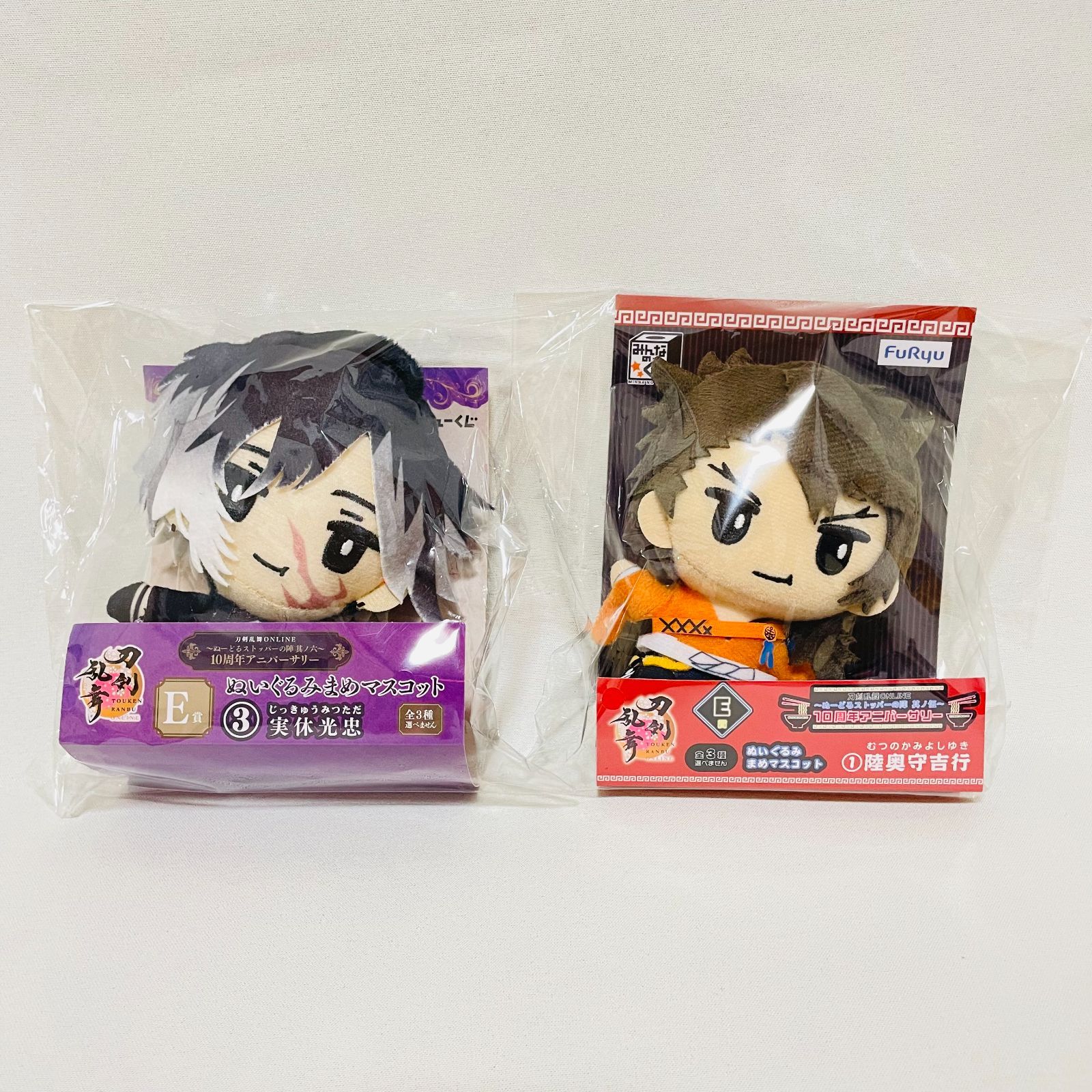 フリューくじ「刀剣乱舞ONLINE」E賞 ぬいぐるみまめマスコットの謙信藤四郎と実休光忠 &「みんなのくじ 刀剣乱舞-花丸-」のE賞 陸奥守吉行 ぬいぐるみマスコット セット