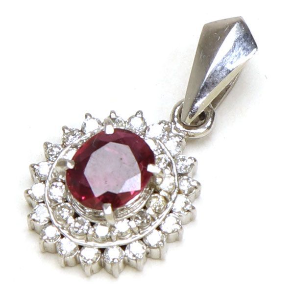 素材:トップ:プラチナ900、ルビー:0.63ct、ダイヤモンド:0.38ct