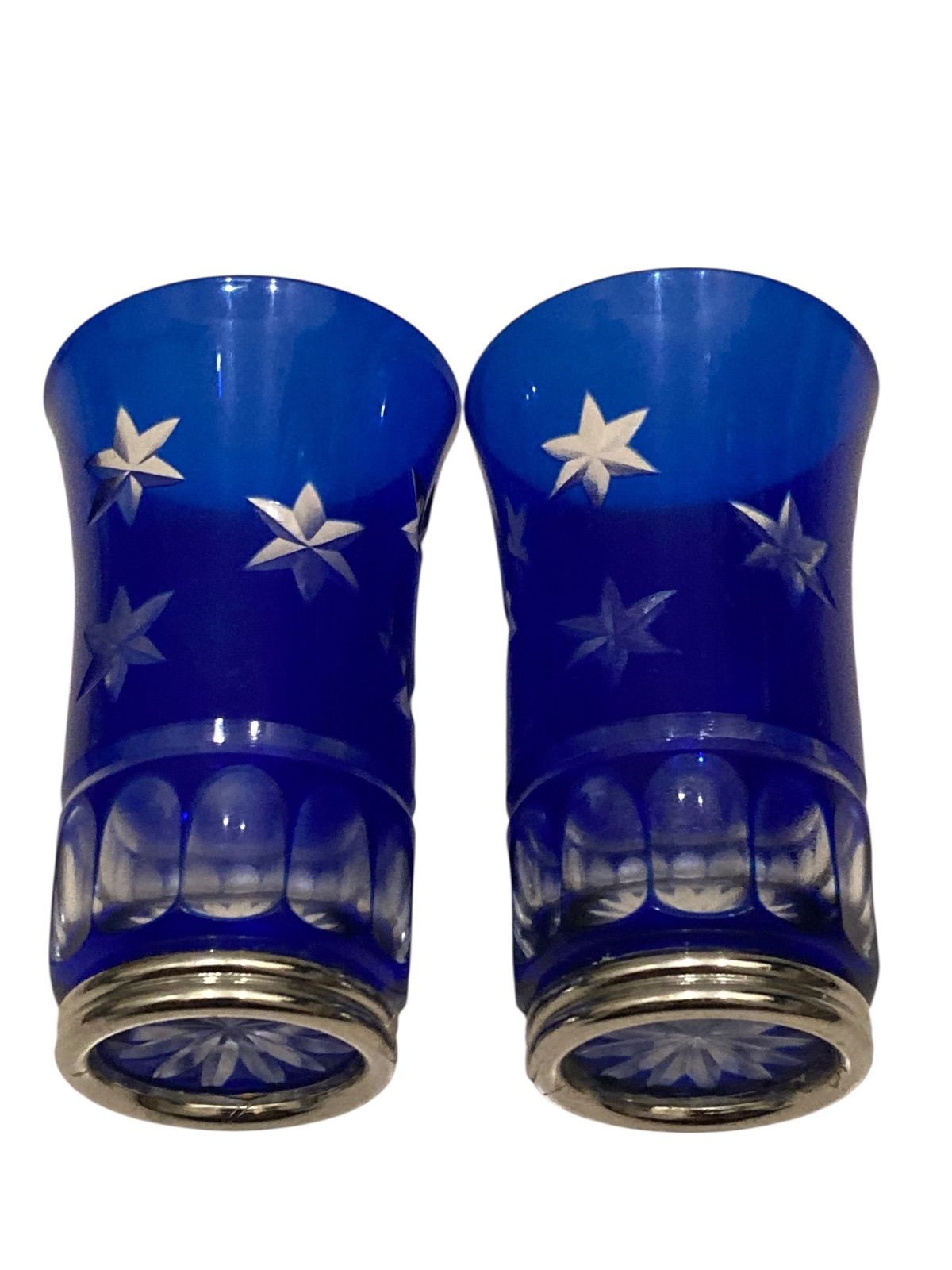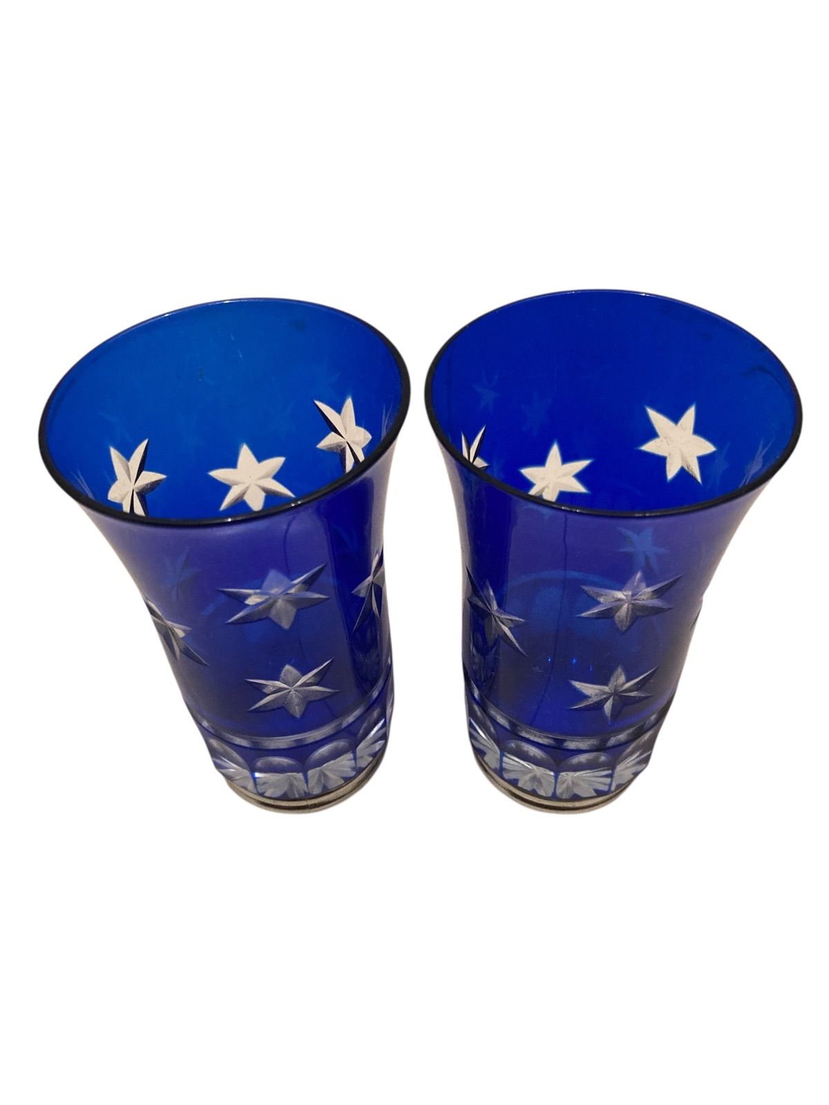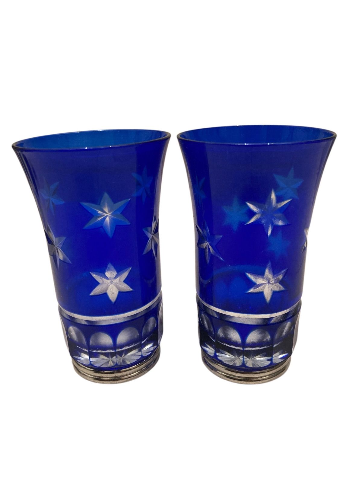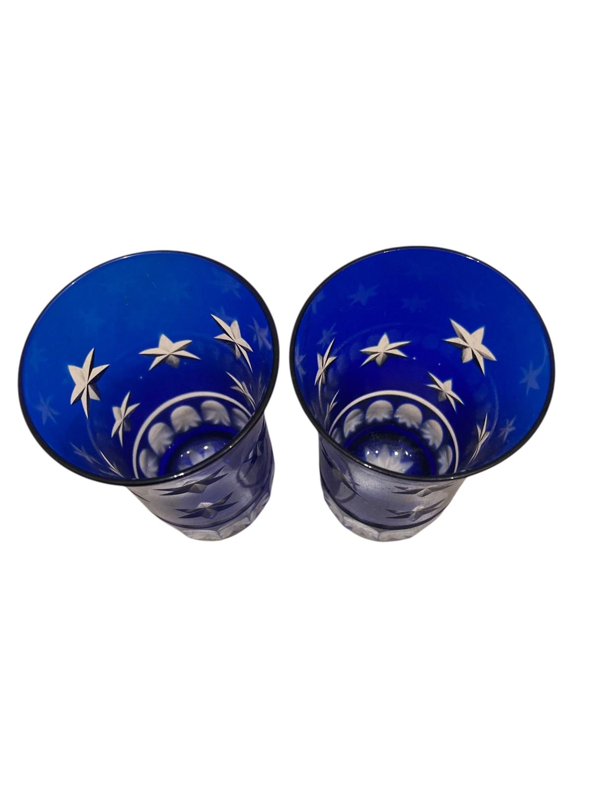 被せ切り子 はりき 切子グラス 星 2個セット 日本 伝統的 ガラス工芸技法 切子 きりこ グラス コップ 切子 ガラス 星形カット 関連 技法 江戸時代後期 明治時代 ヨーロッパ カットグラス 独自 工芸技法 アンティーク コレクション N25L(T)37