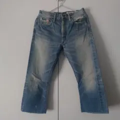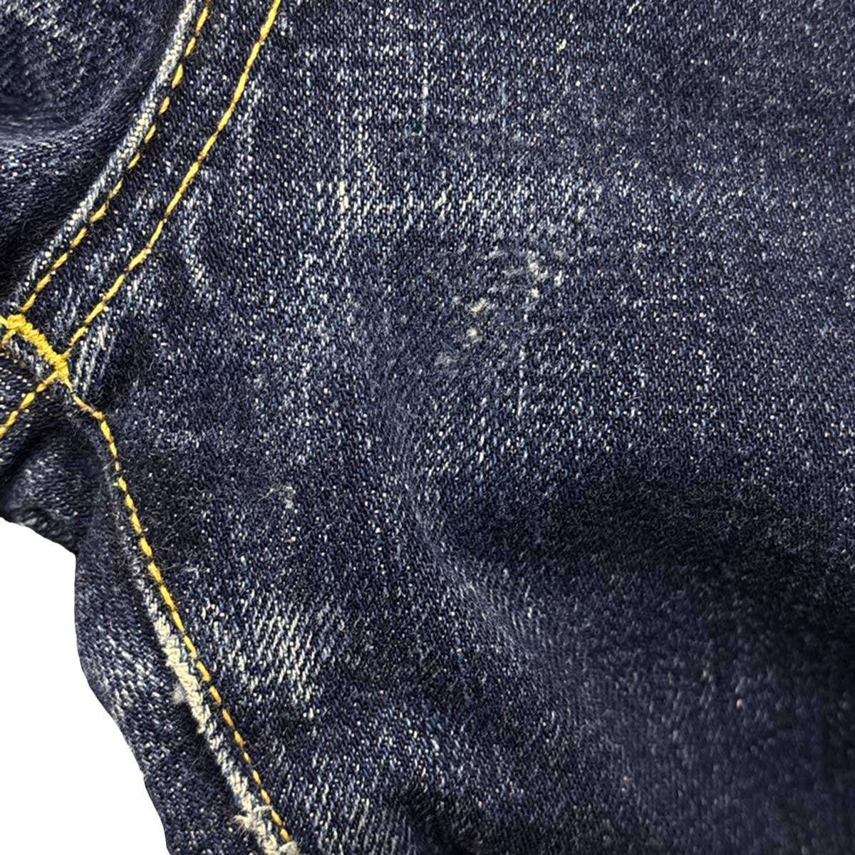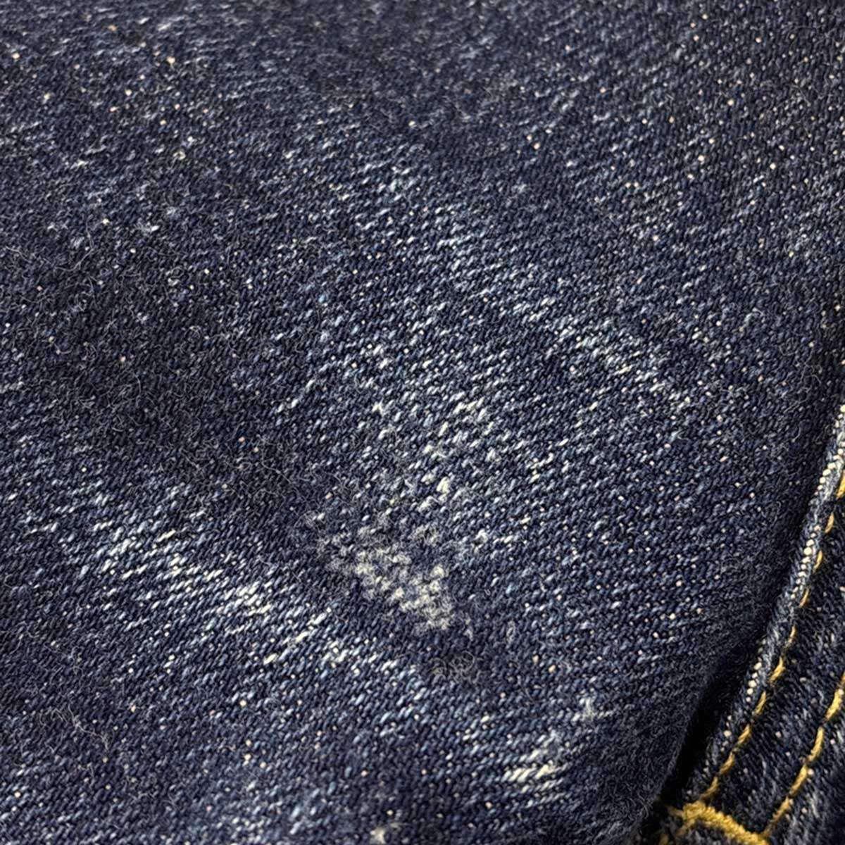 【状態について】ポケット裏地にやや色移り、股部分・左裾一部に擦れ、ややあたり、レザーパッチにややひび割れがございます。