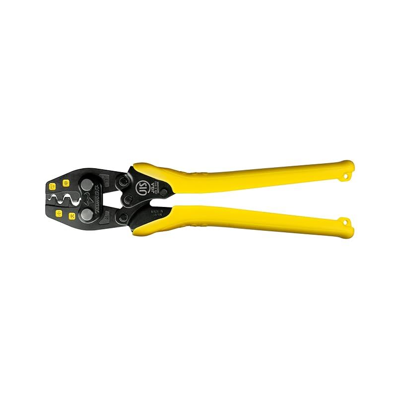 JIS C 9711認証取得品。リングスリーブ用(1.6×2・小・中・大)。電気工事士技能試験必携工具。二重テコによる倍力効果で圧着時の負担を軽減。構造力学計算による業界NO.1の軽い圧着を実現。