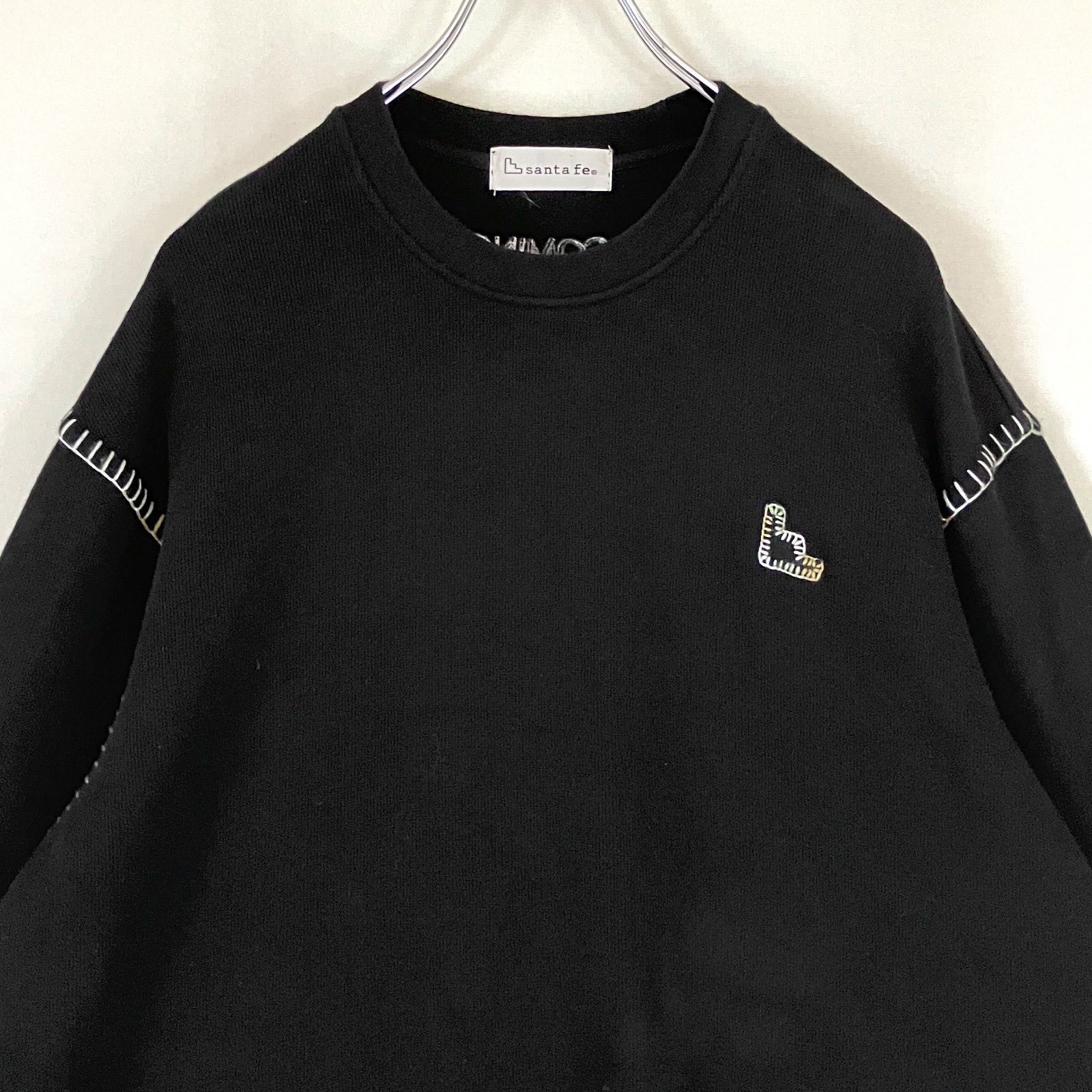 サンタフェ★刺繍ロゴ/ハンドメイド風ステッチ★スウェットライクニット★ブラック★santafe★サイズ50 #2512D067